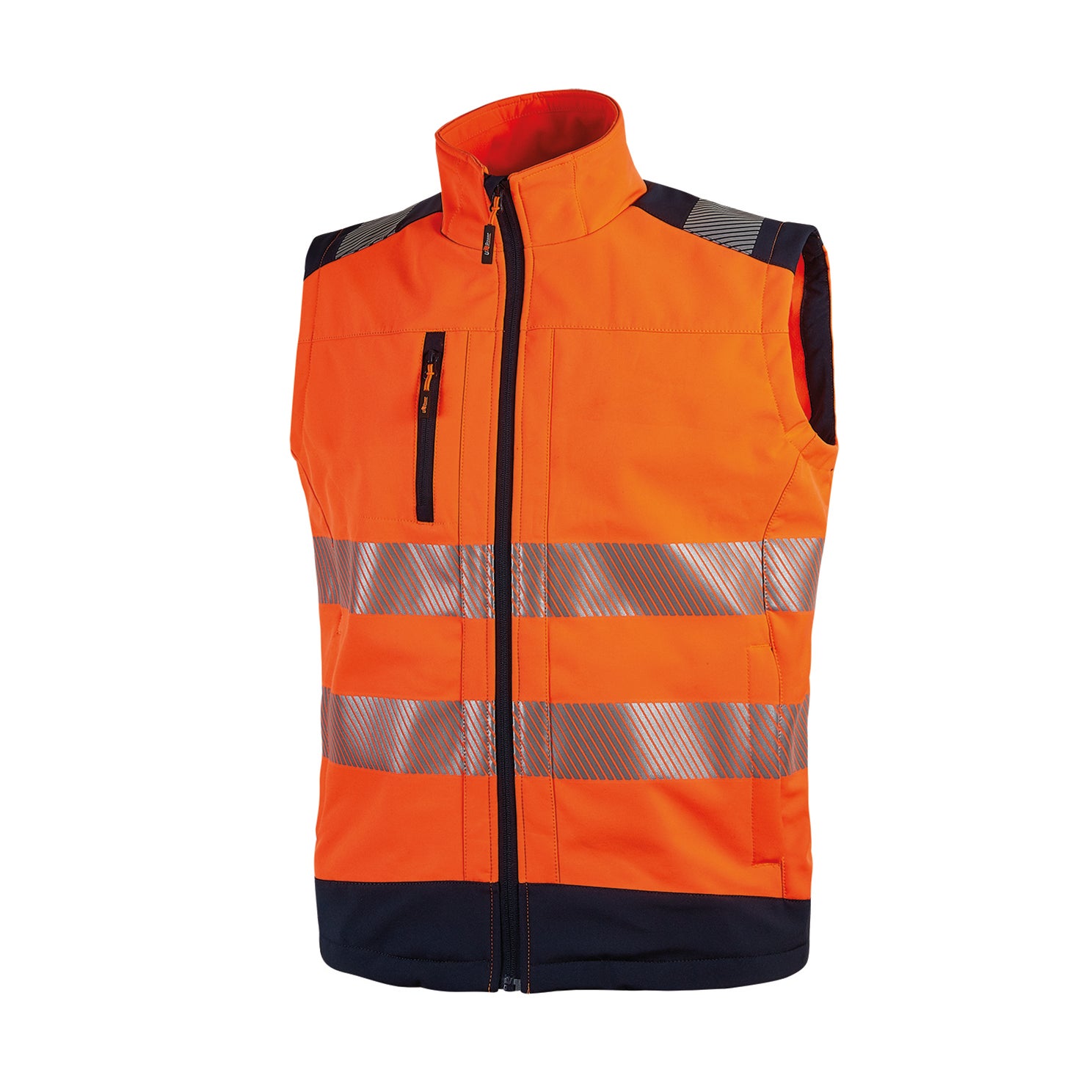 Gilet in tessuto Soft Shell stretch idrorepellente arancio flou, chiusura con zip.