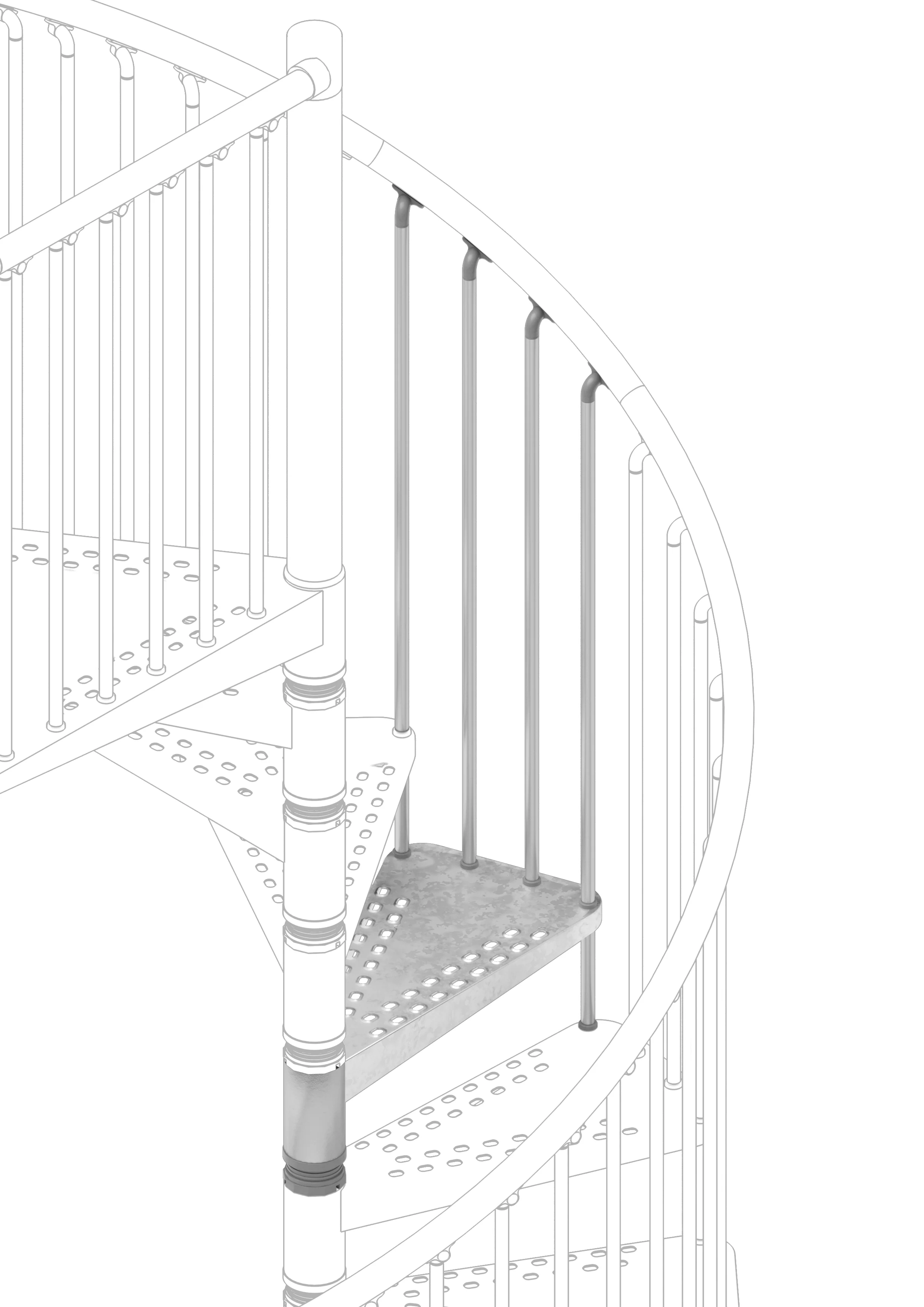 Zeta - Gradino Supplementare - Ø 120 cm - Ringhiera a colonnine verticali (Modello Tube) - Senza Corrimano - Colore Plastica: Grigio Argento - Metallo: Acciaio Zincato