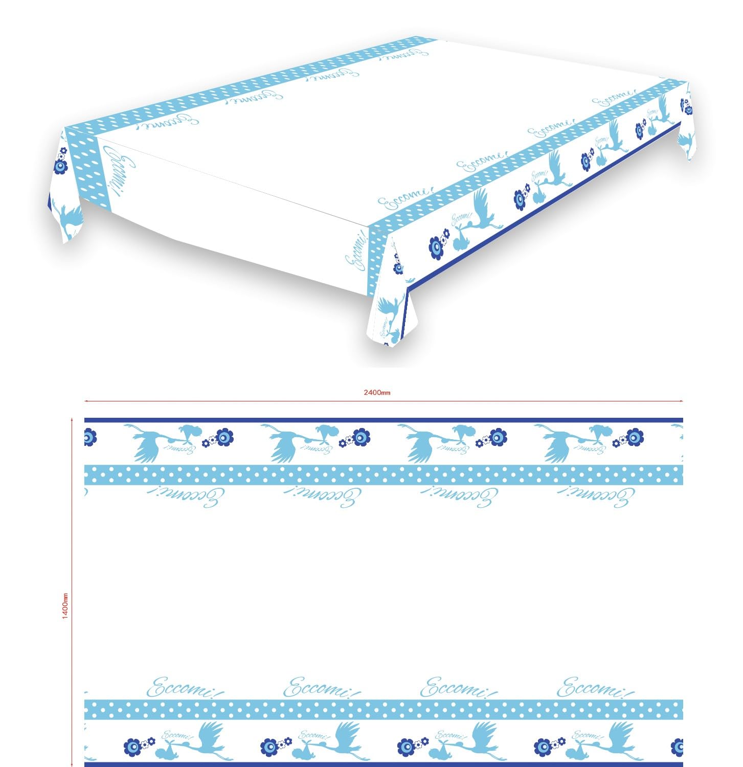 Graziano, Tovaglia in Plastica NASCITA CELESTE, tavola 8 persone, 140 x 240 cm