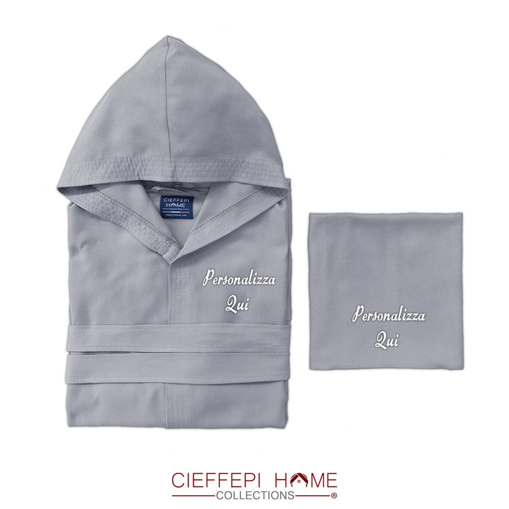 GYM personalizzato Accappatoio microfibra unisex con cappuccio + telo personalizzato - Cieffepi Home Collections - Grigio Perla - XXL