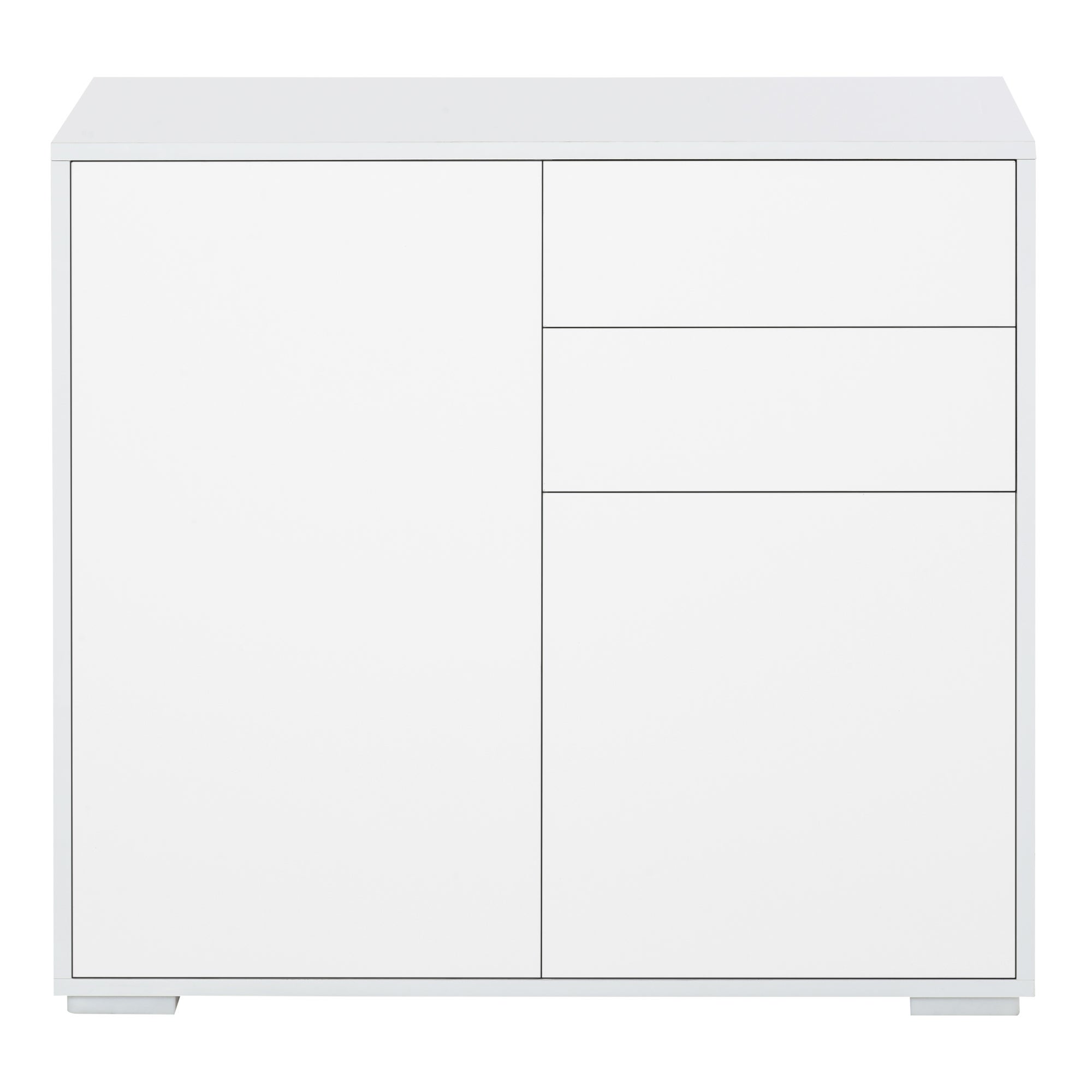 Il mobiletto basso HOMCOM è l'arredo moderno, elegante e versatile che non può mancare nella tua casa. Questo mobile multiuso può integrarsi all'arredo di soggiorno, cucina, bagno e ufficio. Solido e stabile grazie alla struttura in legno particolato, e sicuro grazie al sistema antiribaltamento. Pratica apertura dei cassetti e delle ante con sistema a pressione. I piedini mantengono il mobile sollevato dal pavimento per garantire il passaggio dell'aria.