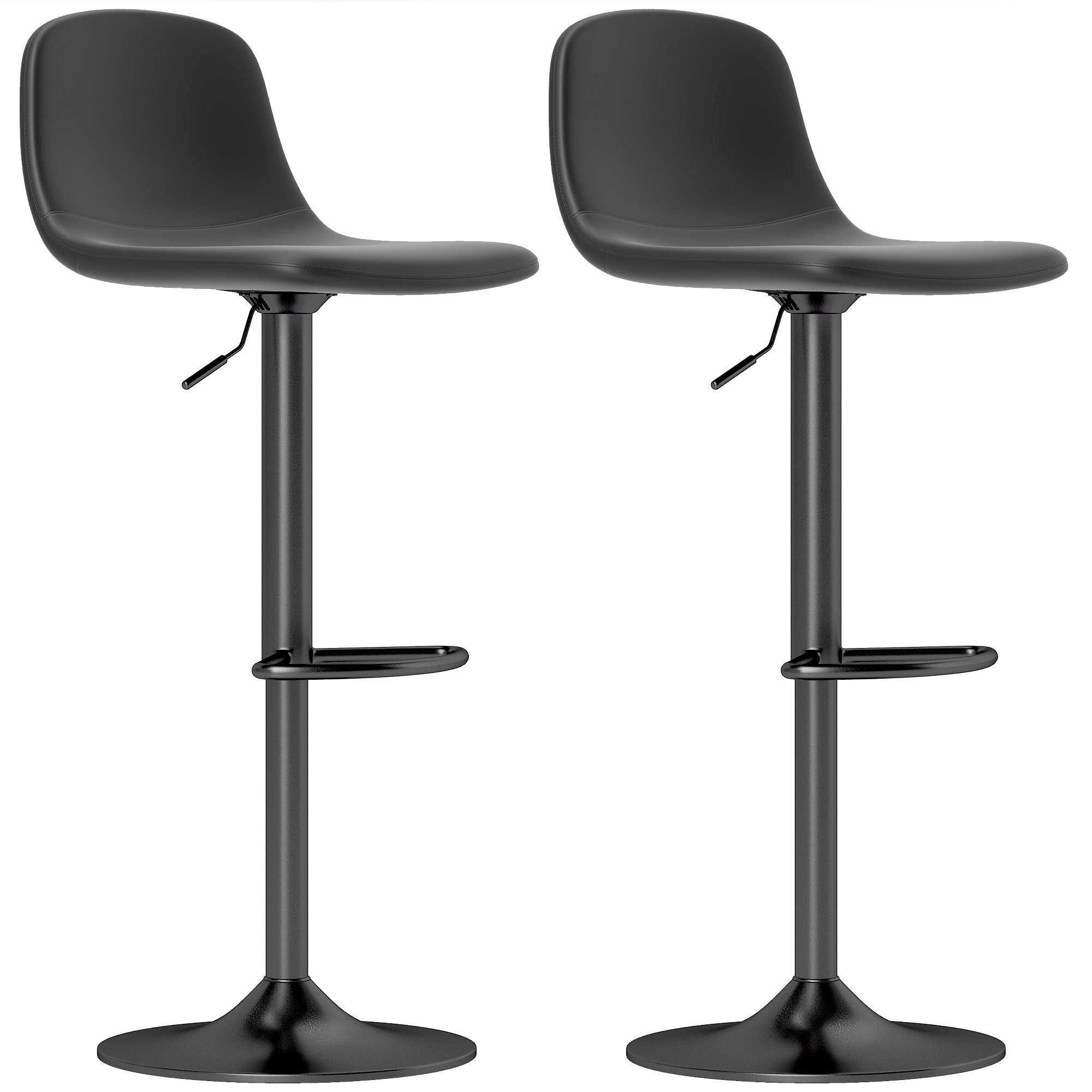 HOMCOM Set 2 Sgabelli da Bar con Schienale e Poggiapiedi, Altezza Regolabile, Pelle PU e Imbottitura, Nero