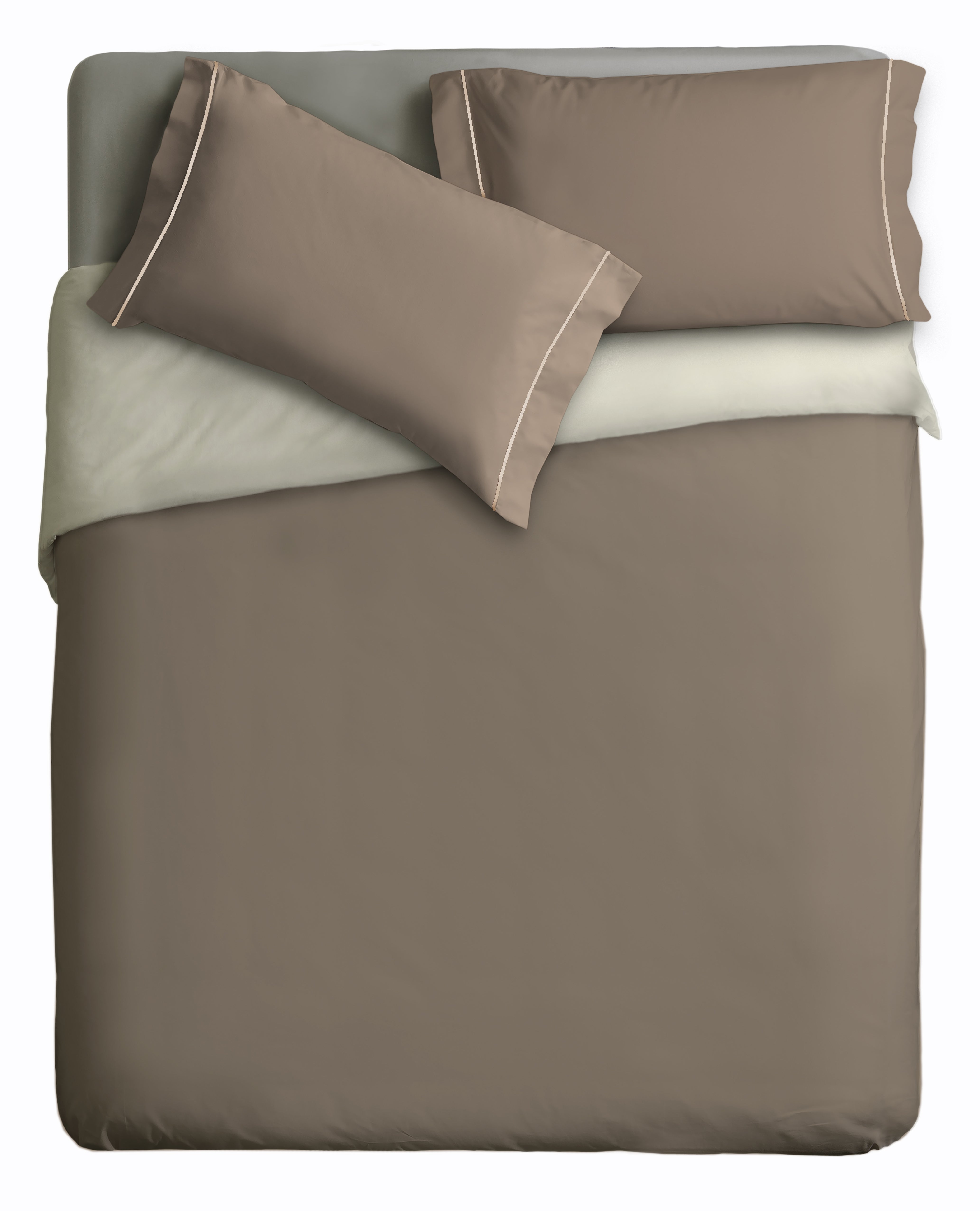IPERSAN Parure Copripiumino Double-Color in 100% puro cotone, 1 Piazza e mezzo, tinta unita, Tortora/Panna