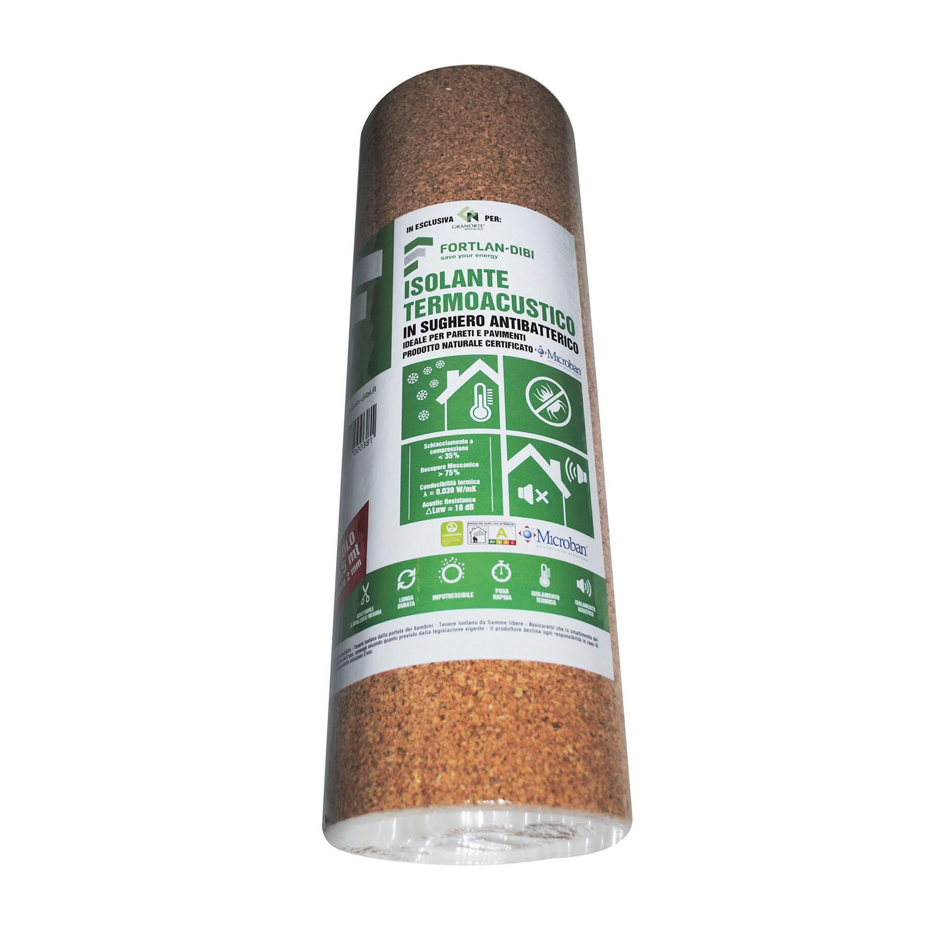Isolante in sughero FORTLAN supercompresso L 10 x L 1 m, Sp 2 mm densità 300 kg/m³