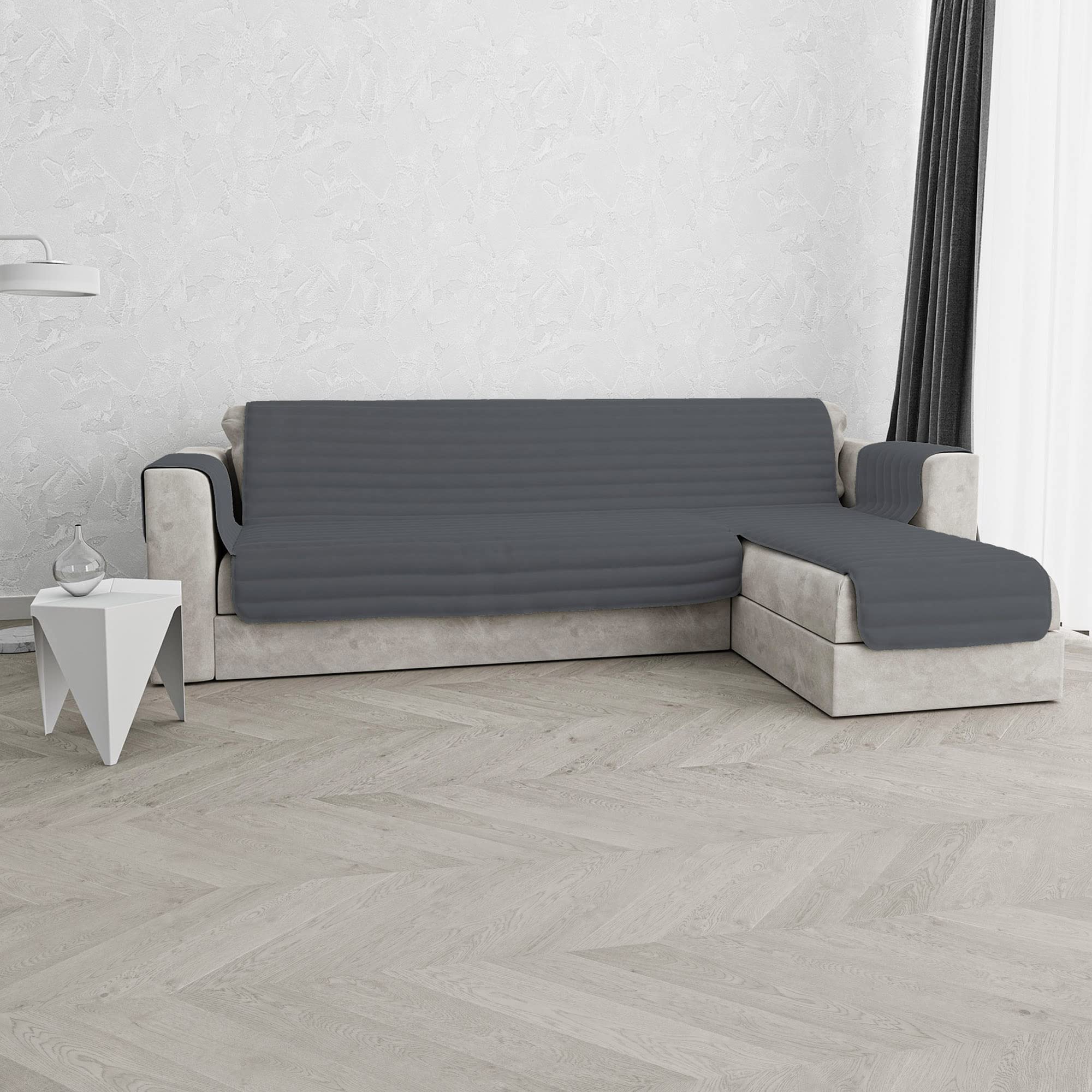 Italian Bed Linen Copridivano Trapuntato Pinsonic TRENDY con Penisola Reversibile, Grigio Scuro, 240 cm