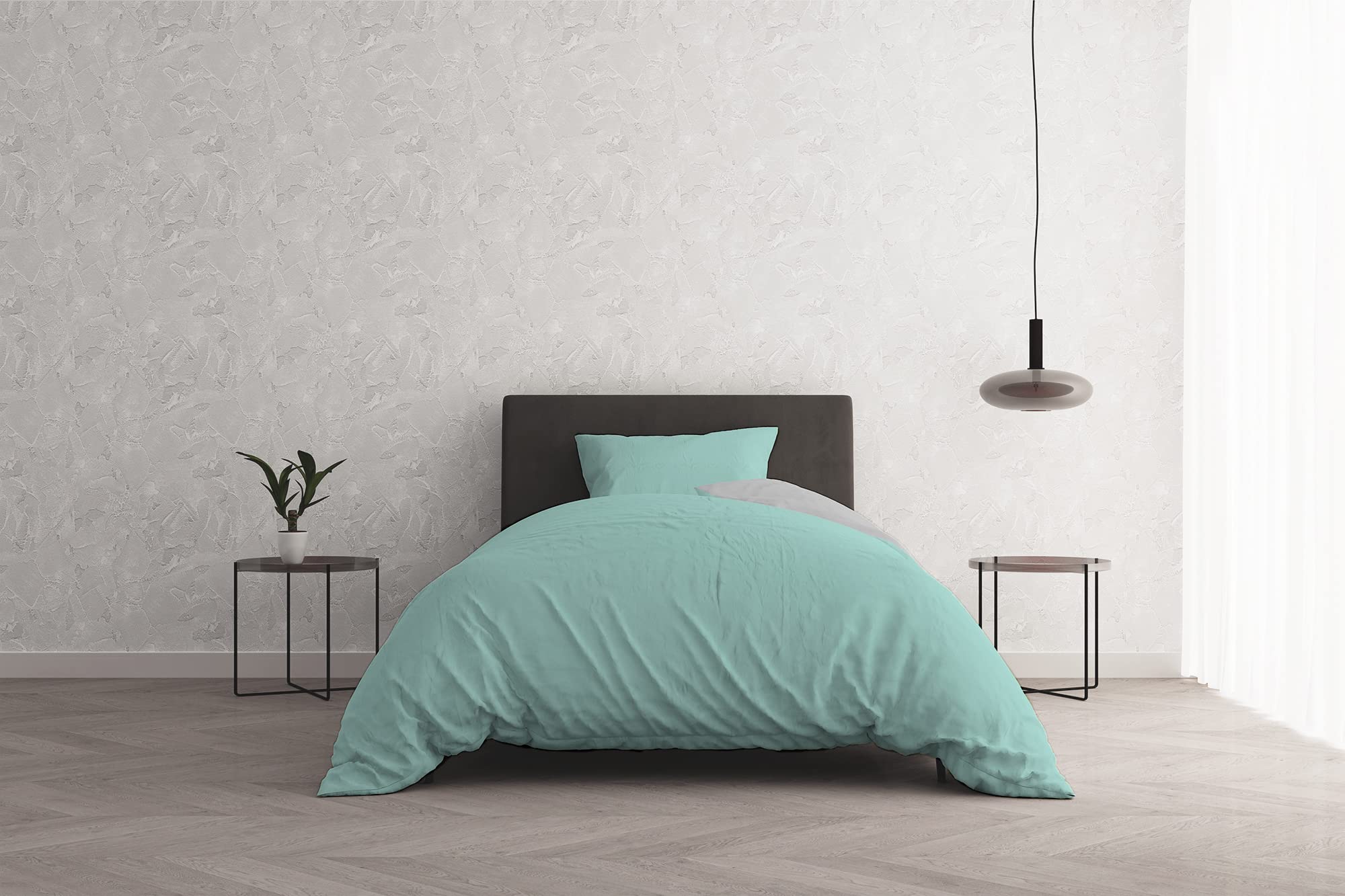 Italian Bed Linen Copripiumino Natural Color, Cotone, Verde Acqua/Grigio Chiaro, Piazza e Mezza