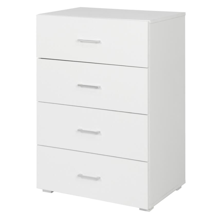 Cassettiera bianca 4 cassetti Maniglie e piedini silver