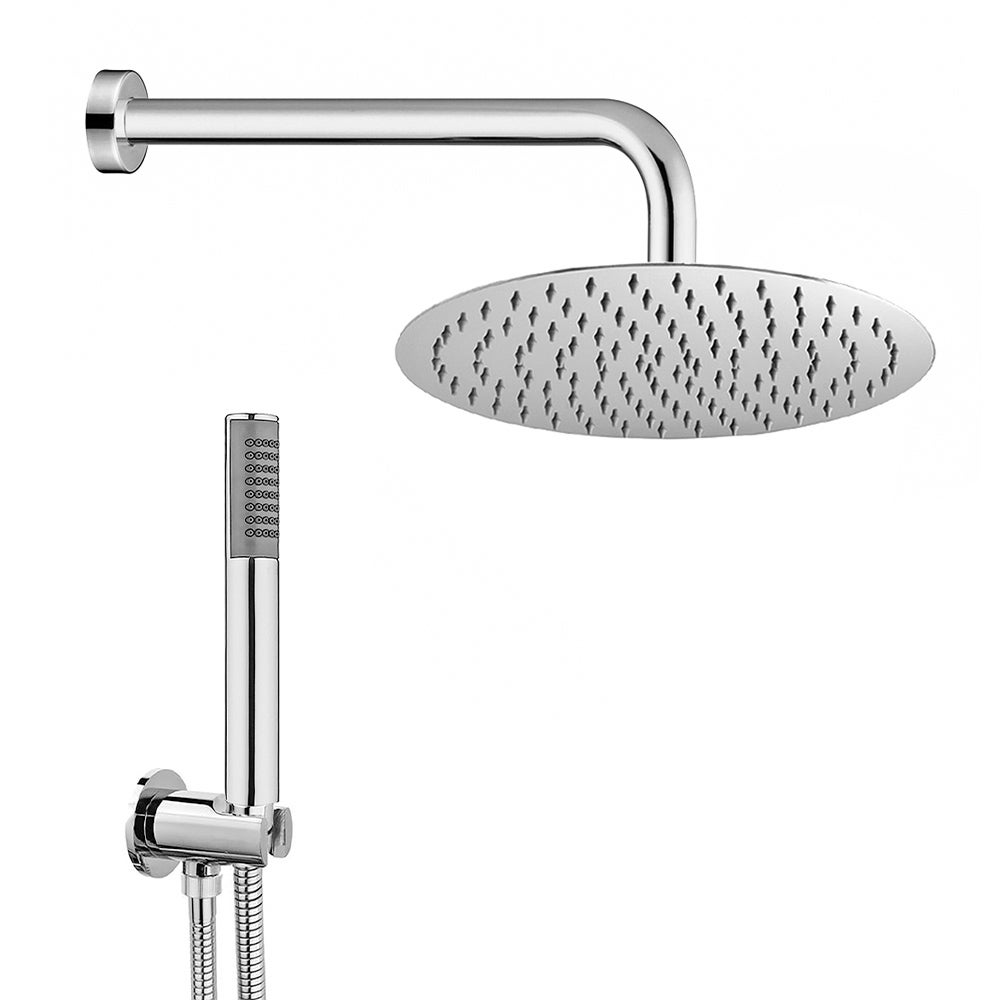 Kit doccia tondo cromo con set doccia + soffione acciaio 25 cm e braccio 40 cm