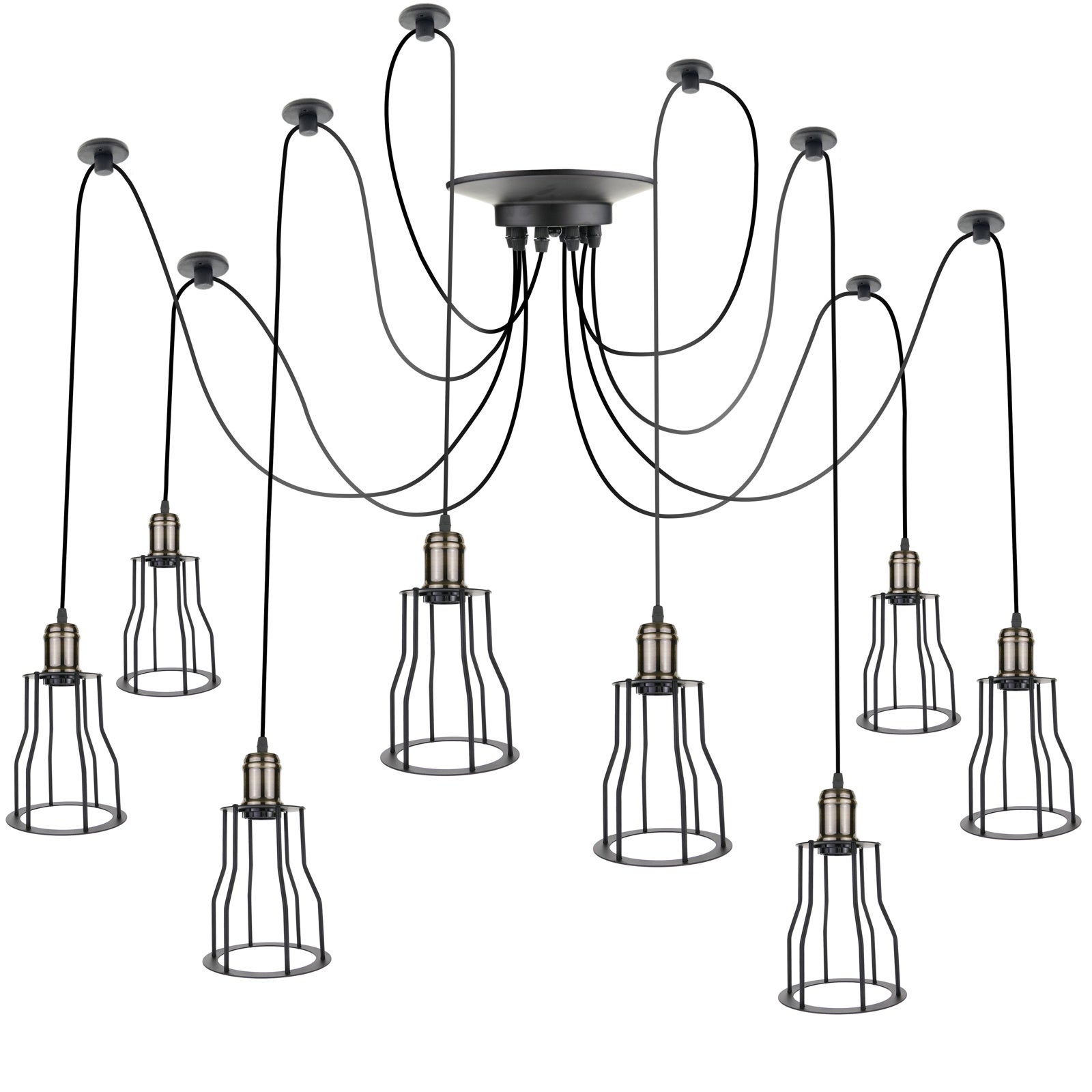 Lampadario a sospensione con gabbia lunga E27 8 lampadine 3m cavo nero