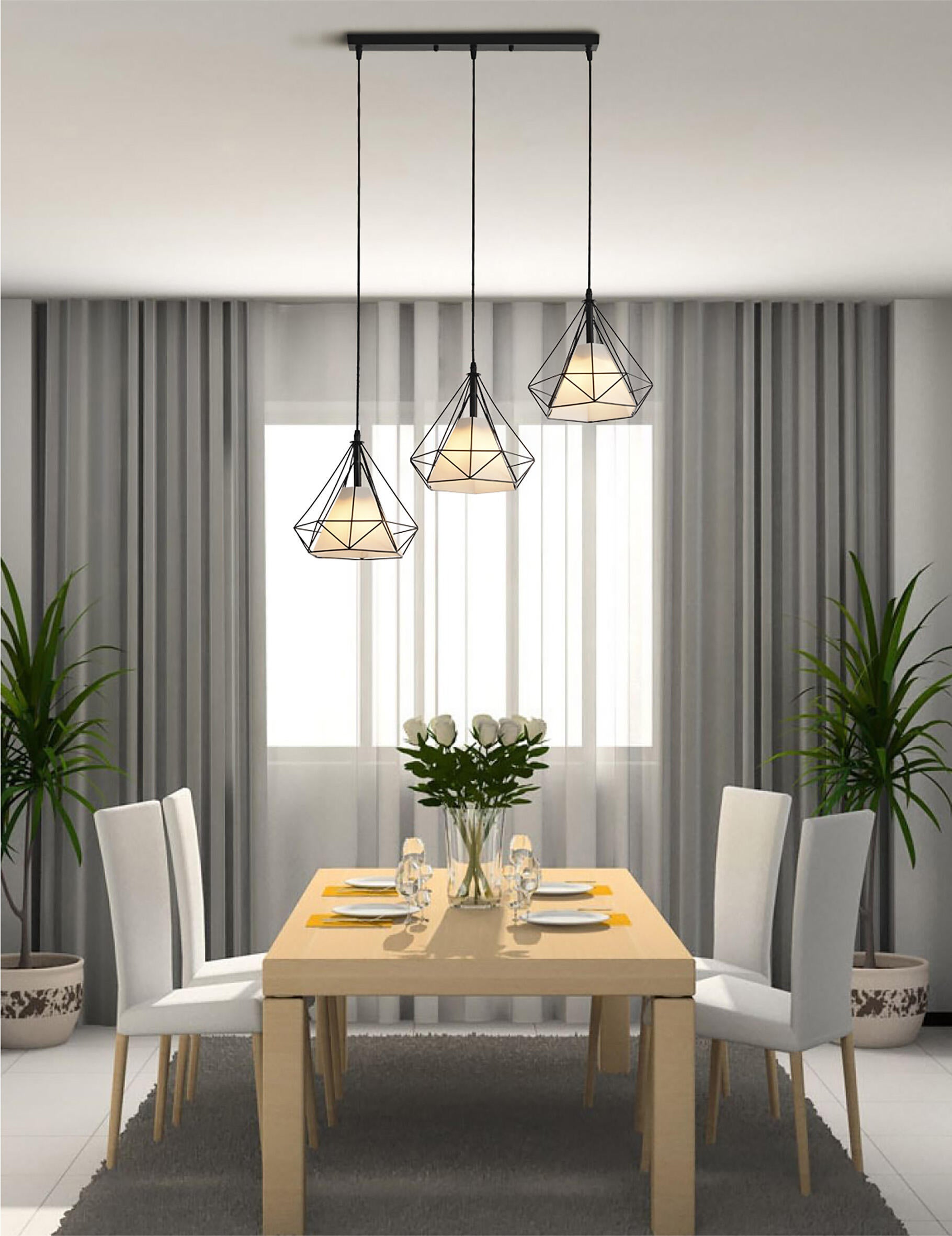 La sospensione a tre punti luce Tango trova posto negli ambienti arredati nei vari stili di tendenza come il vintage, lo stile retrò e industriale. Realizzata in metallo nero e acrilico bianco, la sospensione Tango saprà illuminare e decorare l'ambiente grazie al suo design geometrico fatto di fili in metallo che danno un tocco davvero originale alla tua zona giorno. Funziona con tre lampadine E27 da 42W max non incluse.