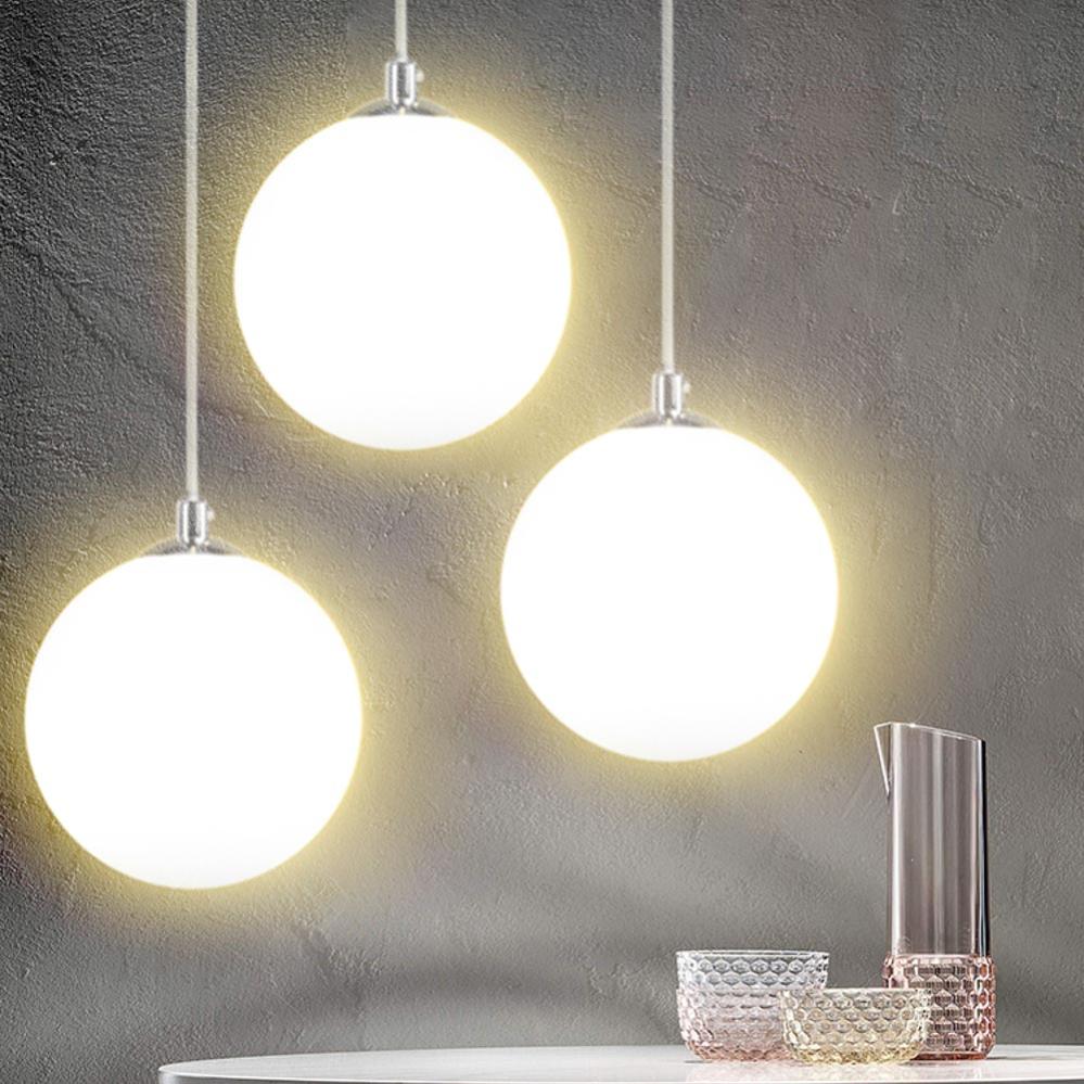 Design moderno e minimale,con paralume a forma di sfera dal diametro di 25 cm realizzato interamente in vetro opaco di altissima qualità che dona un tocco unico agli ambienti di casa tua, fornito inoltre di singolo portalampada per lampadine E27 di massimo 40W.