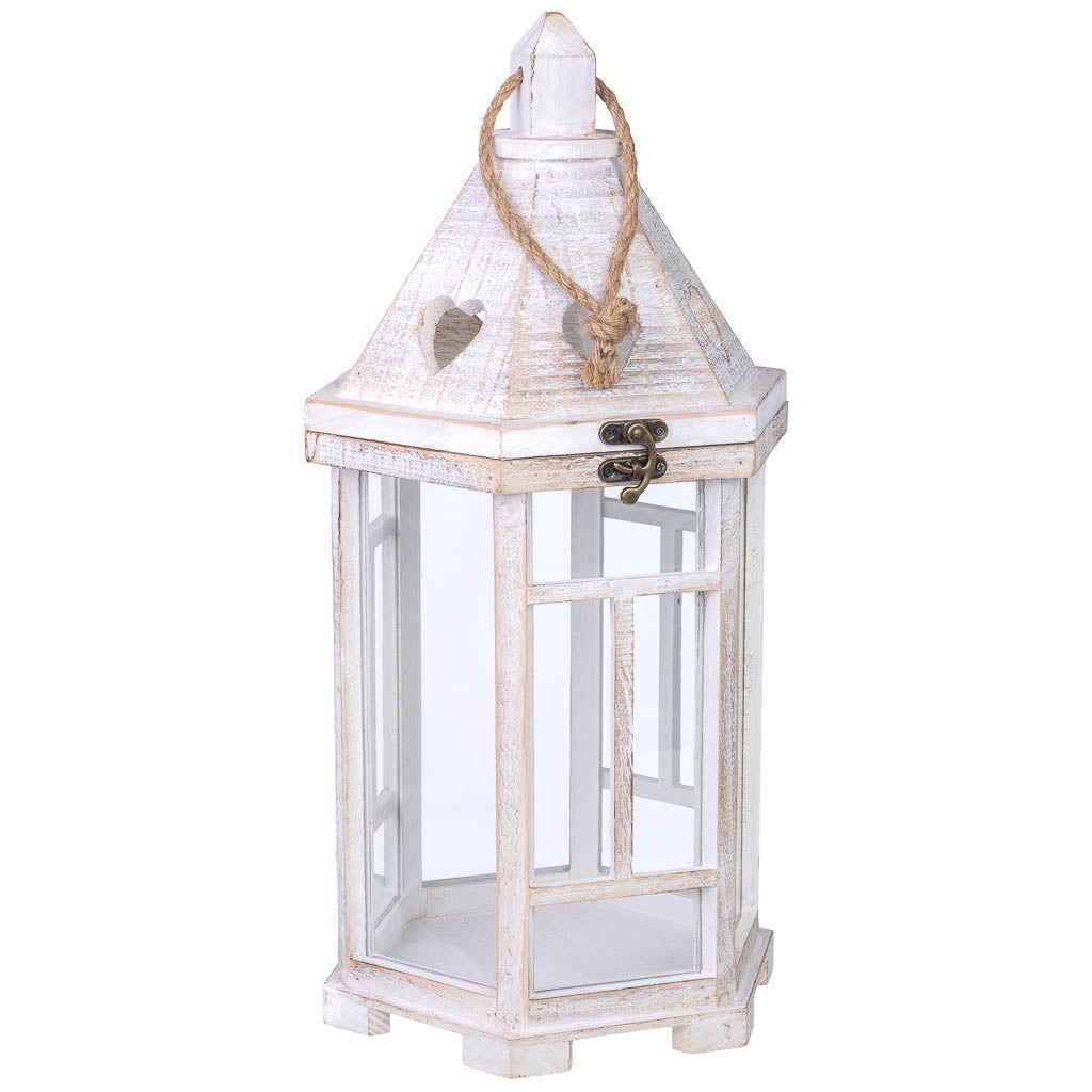 Lanterna con design rustico in legno. Con dimensioni di 22x22 cm e un'altezza di 51 cm, è perfetta per creare atmosfera in spazi scarsamente illuminati.
