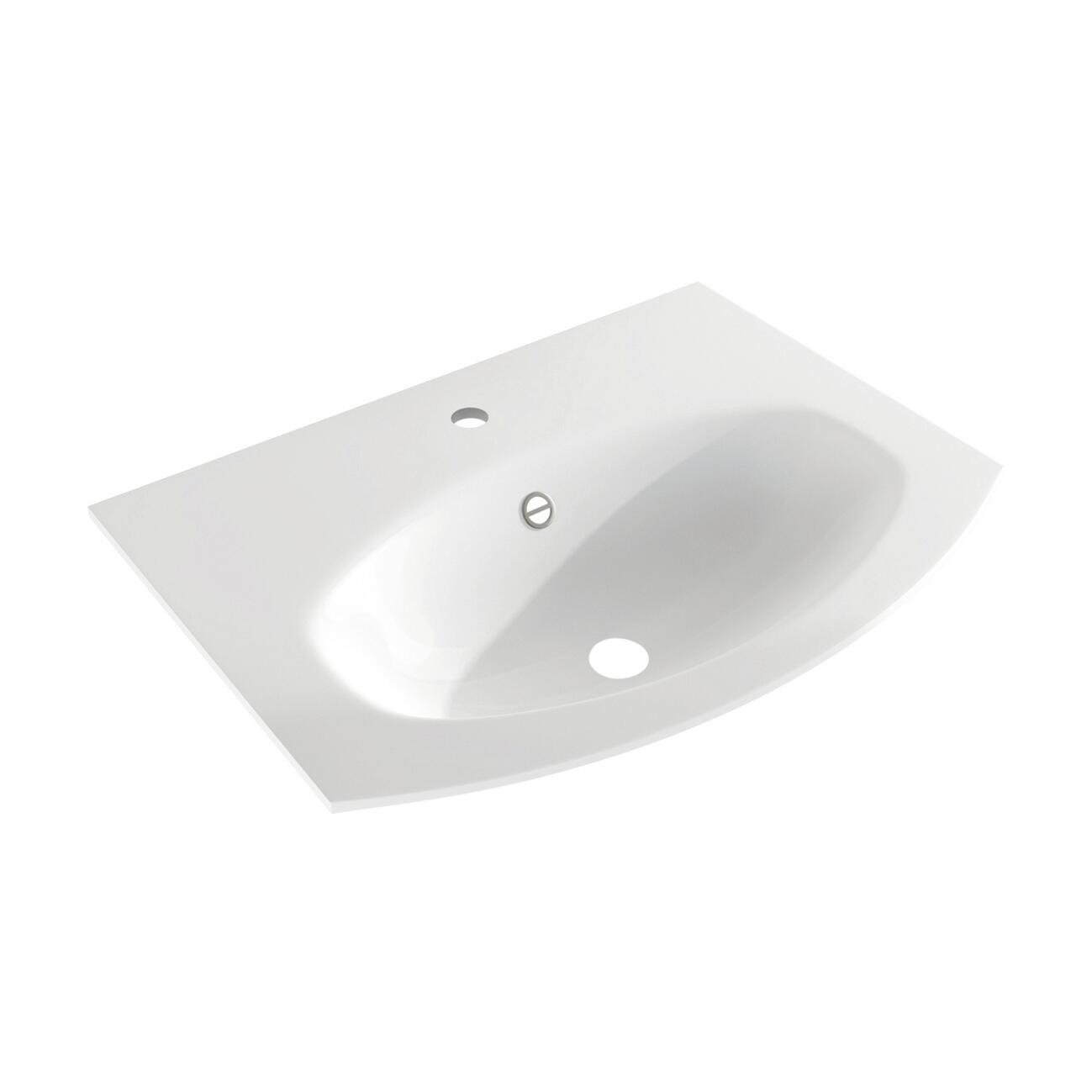 Lavabo a incasso rettangolare L 70 x H 1.2 x P 52 cm in resina bianco lucido