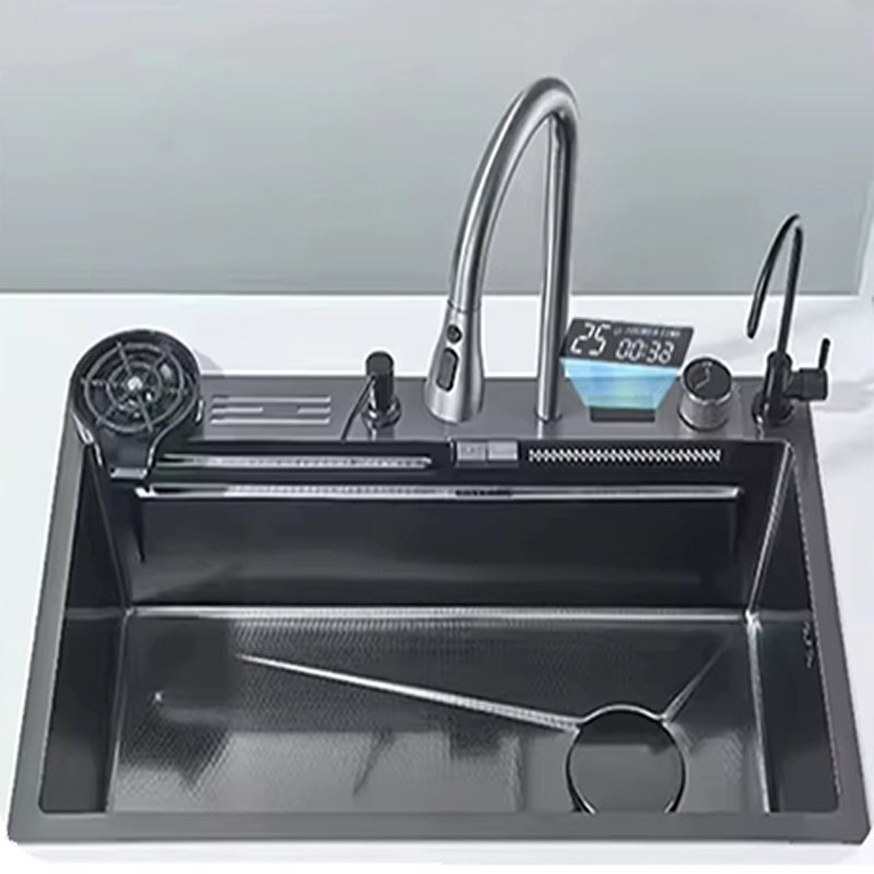 Lavello da cucina multifunzione in acciaio inox con cascata, rubinetto digitale, 2 manopole, 75 x 45 cm