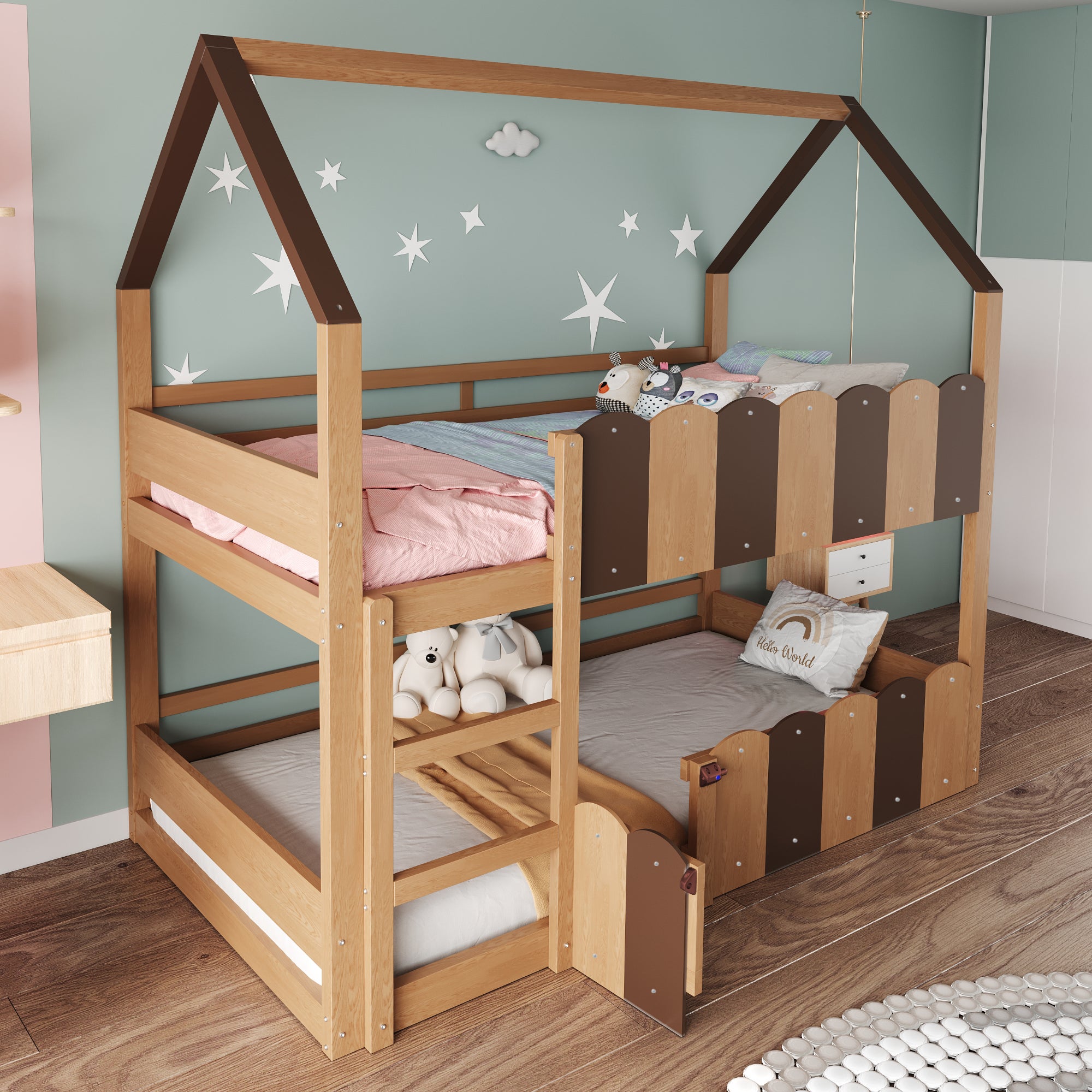 - Design modulare e divertente – Letto doppio in legno con struttura a casa, stimola l’immaginazione e la creatività dei bambini.