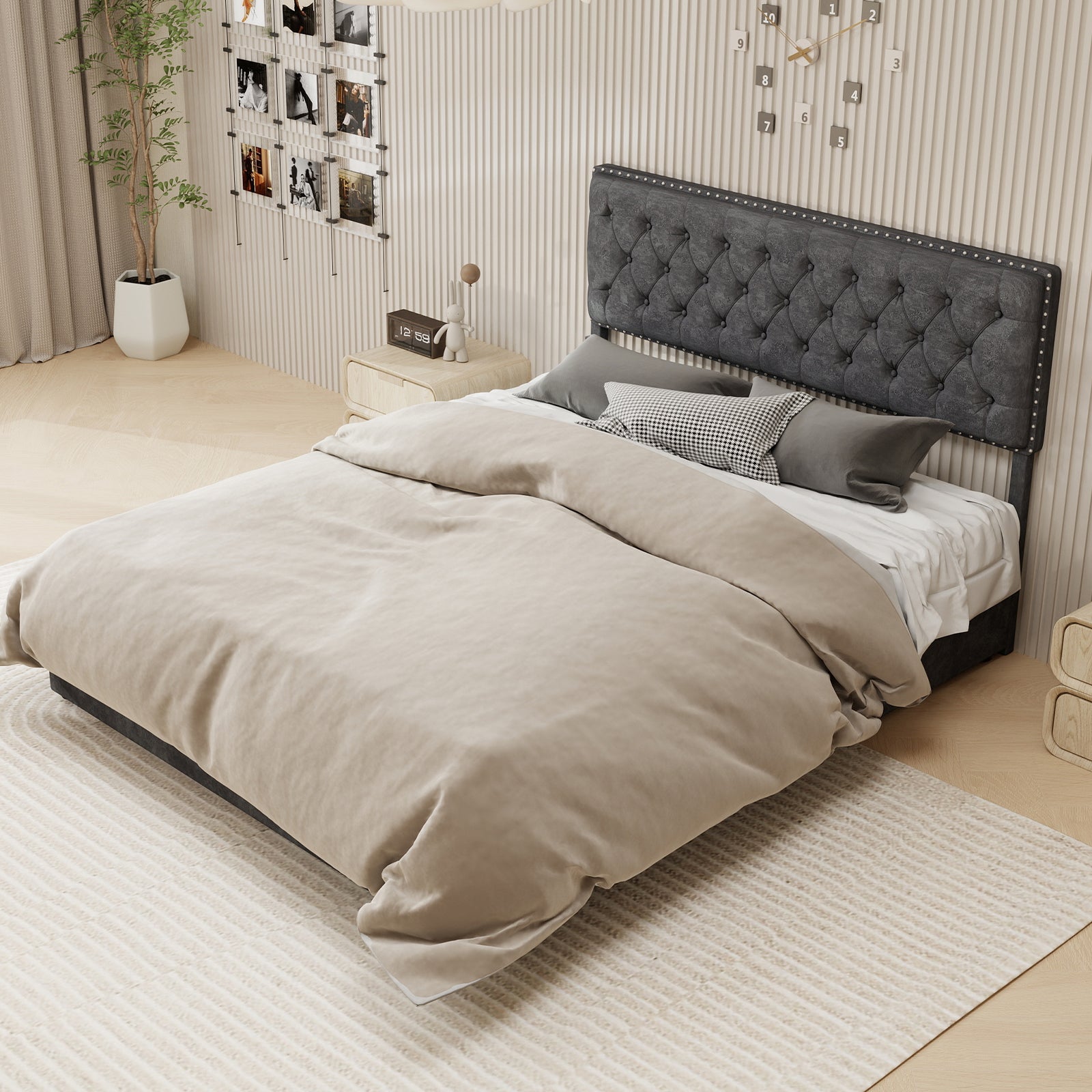 Letto contenitore matrimoniale 160x200 cm, doghe in legno, testiera, velluto grigio, senza materasso