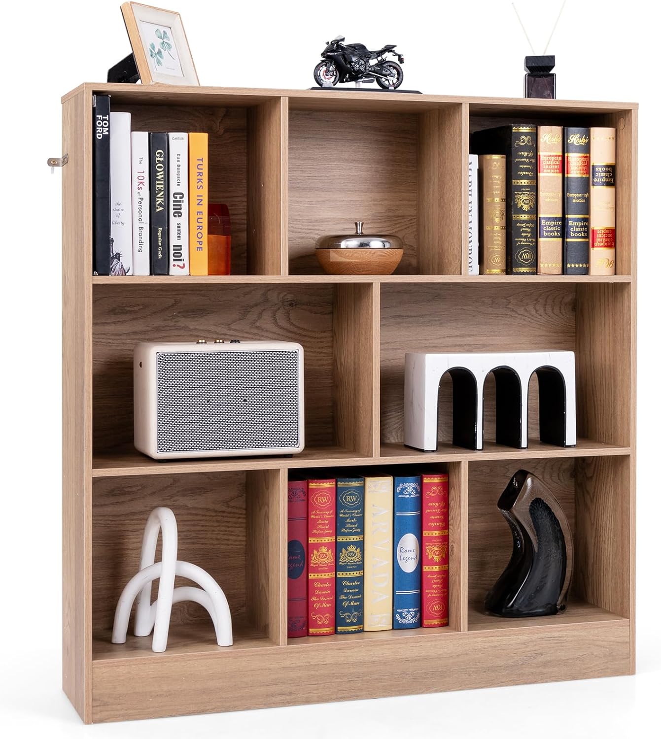 Libreria a 8 Cubi, Organizzatore di Stoccaggio a 3 Ripiani con 2 Kit Anti-Ribaltamento, Scaffale Multiuso in Legno per Soggiorno, Ufficio Stan