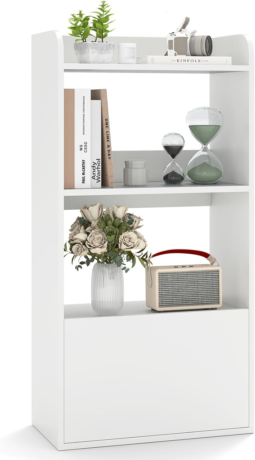 Libreria Aperta a 3 Ripiani, Scaffale Salvaspazio in Legno con Cassetto, Scaffale Portaoggetti Espositivo per Camera da Letto, Soggiorno, Cuci
