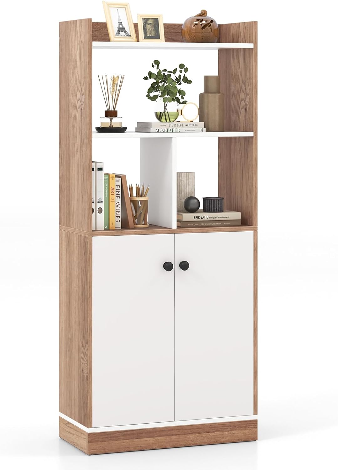 Una soluzione elegante e funzionale per il tuo spazio vitale! La libreria presenta 4 scomparti aperti e doppia anta che fornisce abbondante spazio per esporre e organizzare i tuoi libri, piante o ornamenti. Inoltre, comprendiamo l'importanza della sicurezza, motivo per cui la nostra libreria è dotata di kit anti-ribaltamento. Che venga utilizzata in soggiorno, studio, cucina o ufficio, questa libreria unisce praticità e attrattiva estetica.