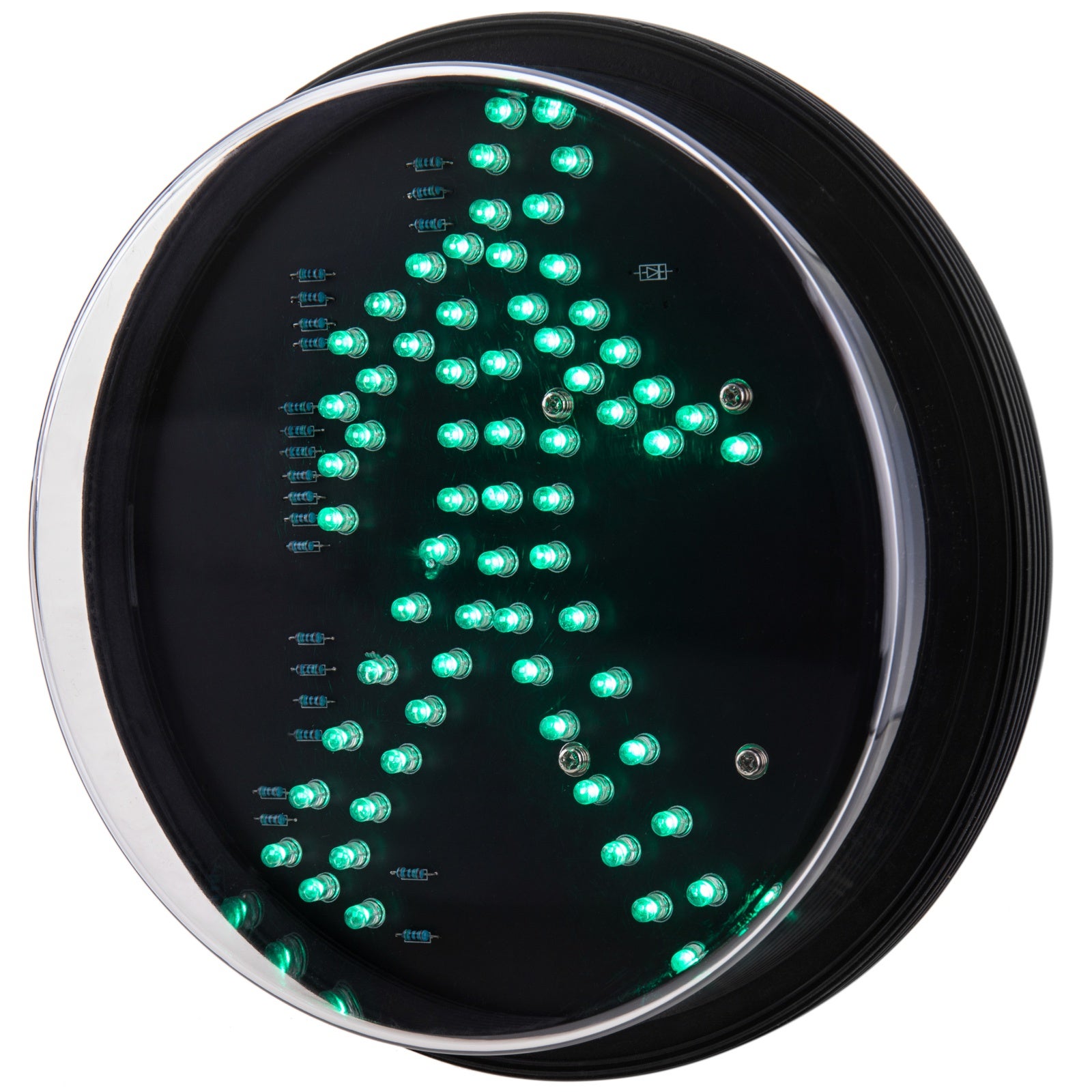 Luce LED di ricambio per semafori a 220V. Figura pedonale verde, basata su un sistema di luci a LED e un modulo di plastica chiuso. Utile per pezzi di ricambio e riparazioni di semafori pedonali. Predisposto per uso esterno. Pratico per controllo accessi, controllo del traffico e altre situazioni che richiedono il controllo pedonale.