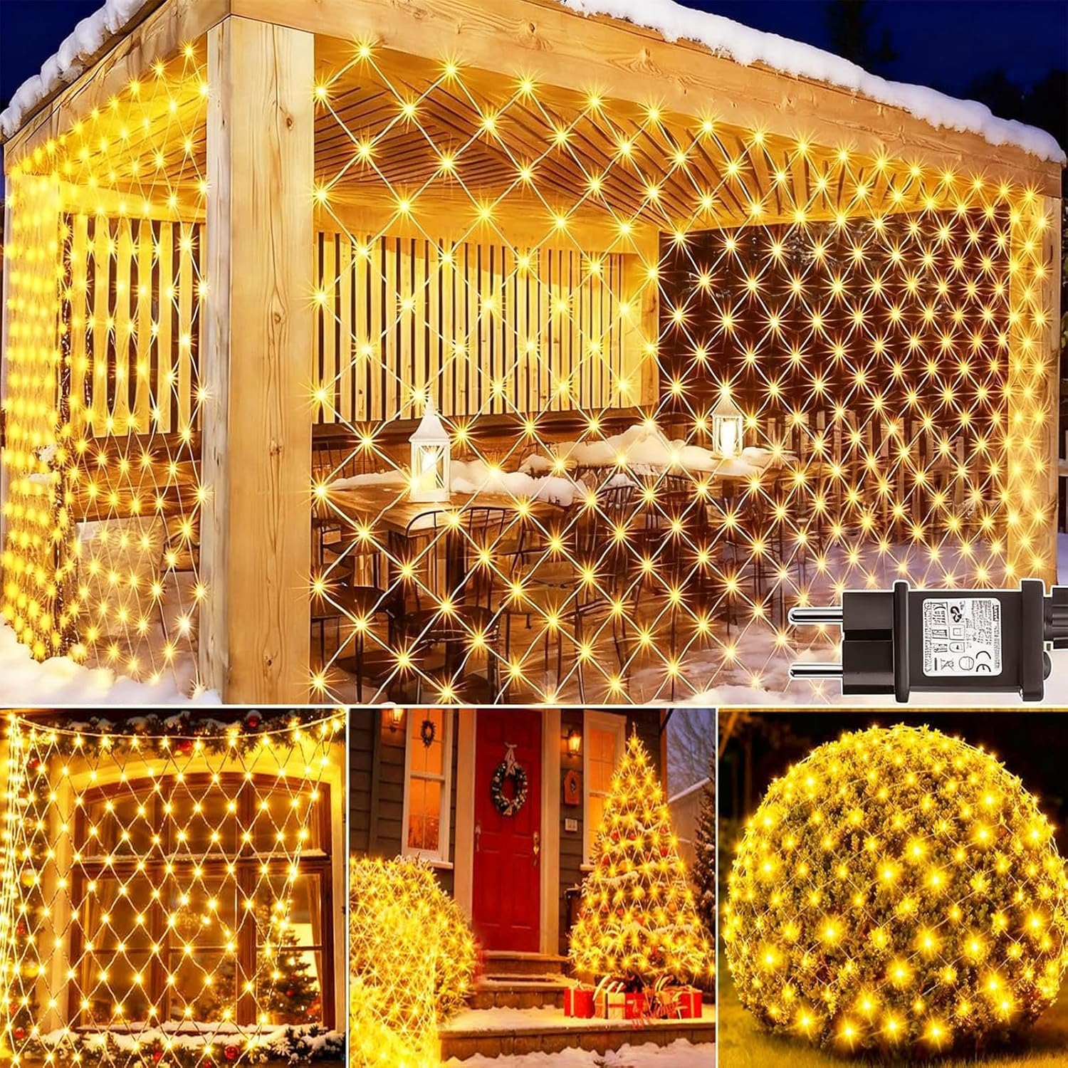 Catena luminosa a 160 LED con adattatore: realizzate in filo di rame di alta qualità e ricoperte in PVC ultra morbido, queste luci sono resistenti e facili da aprire. Con una lunghezza di 2 metri e una larghezza di 2 metri, illuminano facilmente cespugli, finestre, soffitti, pareti e balconi.