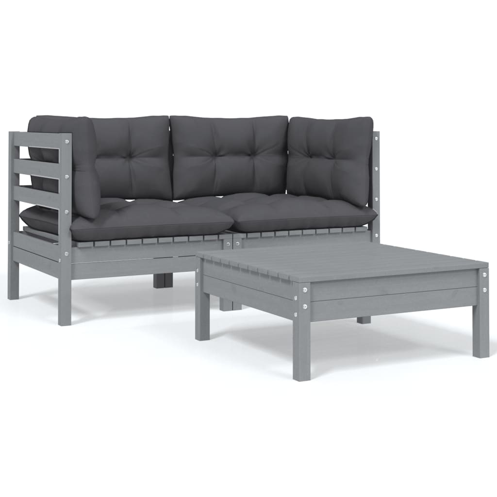 Maison Exclusive - Set Divani da Giardino 3 pz Grigio Cuscini Massello di Pino