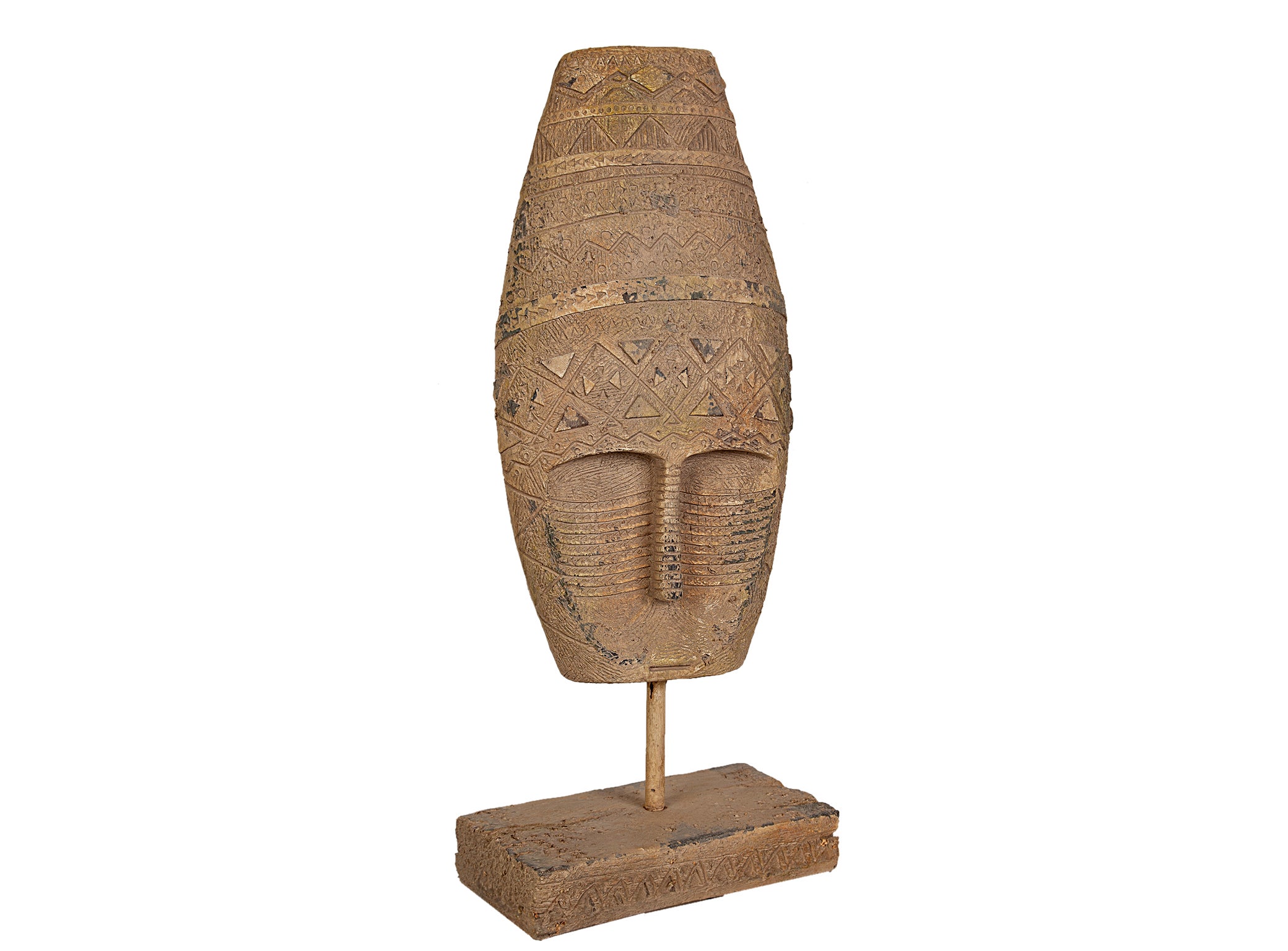 Maschera in resina su supporto Materiale: resina Beige 30x15x67cm. Sistema di ancoraggio: NO