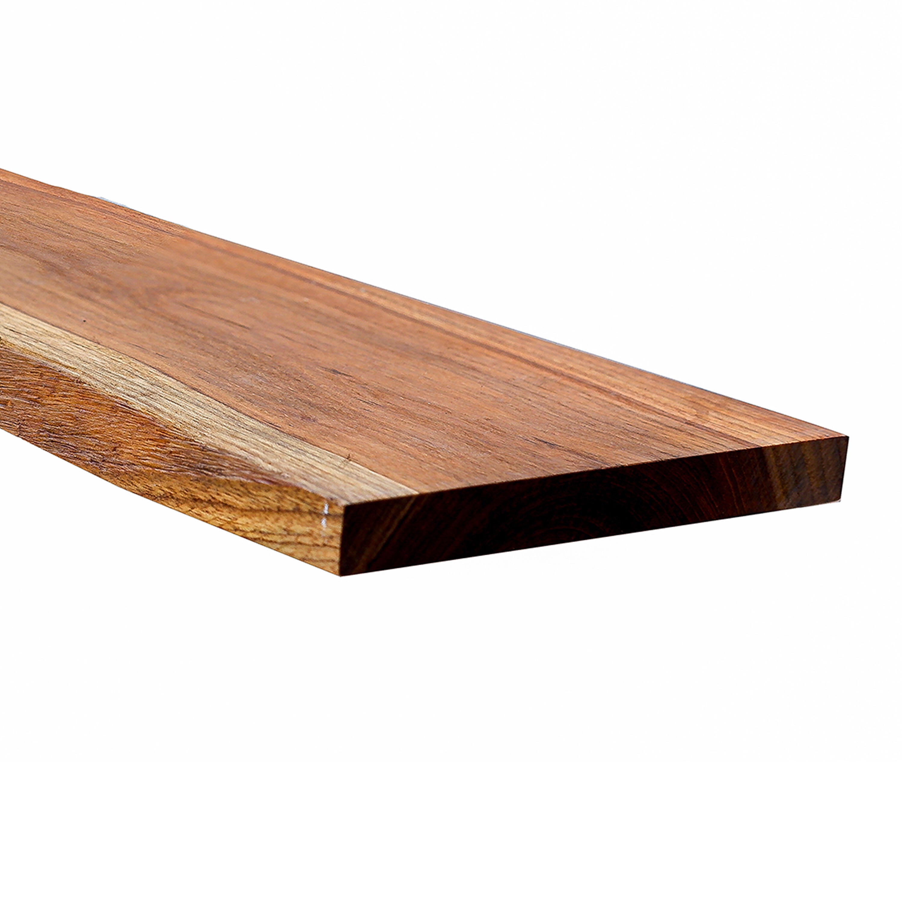 Le mensole decorative a parete “Live Edge” in teak mettono in mostra il loro lungo profilo, volutamente lasciato grezzo e irregolare, lasciando un segno unico nei vostri spazi interni ed esterni. Il teak è un legno nobile, naturalmente imputrescibile e molto stabile, quindi le nostre mensole possono essere utilizzate in qualsiasi ambiente. Inoltre, le nostre mensole sono pronte all’uso. Levigate preventivamente, sono protette grazie all’applicazione di un olio opaco che preserva tutta la raffinatezza e l’autenticità delle sue ricche venature color miele, con un’elegante miscela di toni. Volete mettere in mostra i vostri oggetti decorativi, riporre i vostri libri, i vostri prodotti di bellezza, le vostre spezie, mettere il vostro telefono sulla mensola... Scegliete le nostre mensole Live Edge e posizionatele ovunque in casa, dalla camera da letto all’ufficio, dalla cucina al bagno! Eleganti e grafiche, queste mensole in teak massiccio di alta qualità si adattano a qualsiasi interno, aggiungendo un tocco di autenticità per un ambiente caldo e accogliente. Mescolate le lunghezze, posizionatele in modo indipendente, usate la vostra immaginazione e diventate il designer del vostro ambiente.