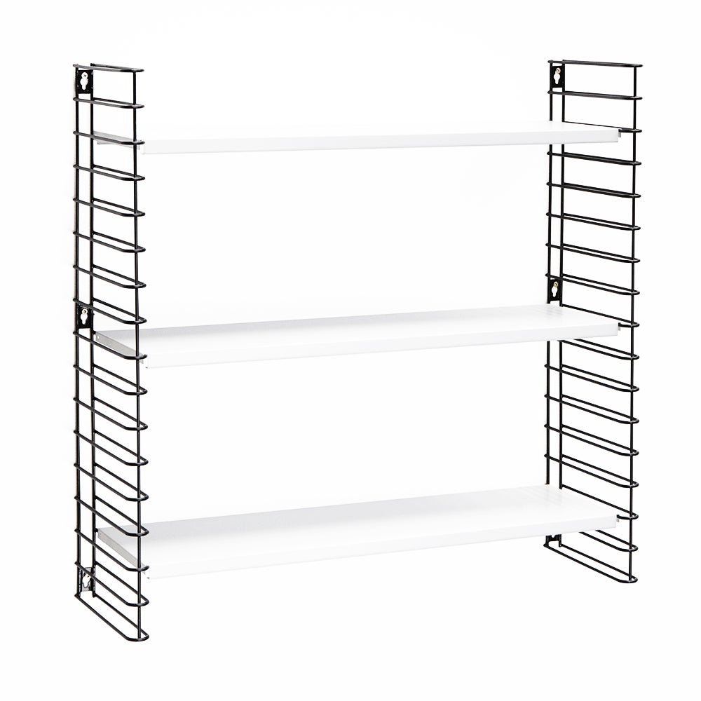 FACILE MONTAGGIO CON 3 RIPIANI IN METALLO E 2 SPONDE LATERALI BIANCHE. DIMENSIONI: 70 X 21 X 68 CM