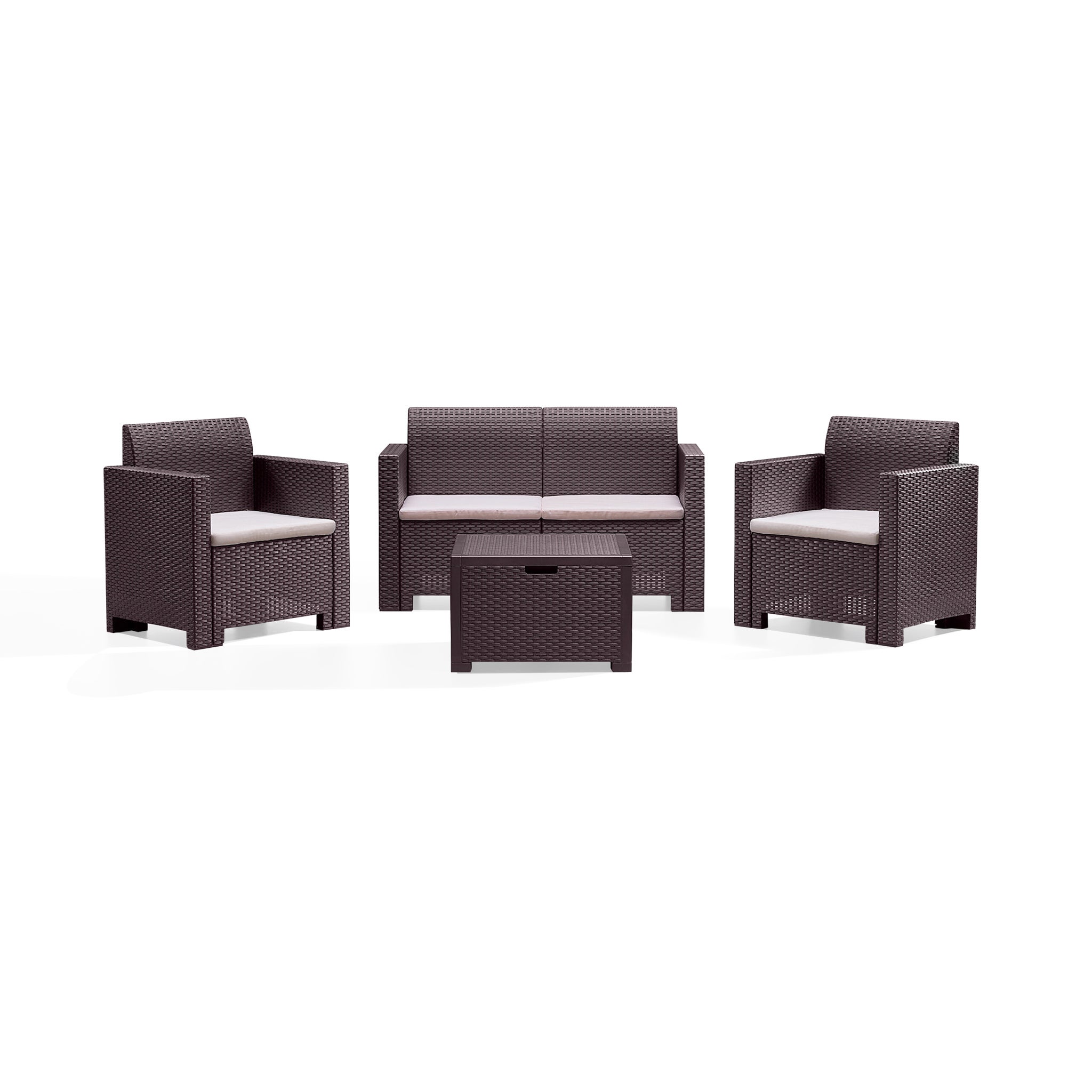 MilaniHome.it - Salotto Da Giardino Set 2 Posti Marrone Con Cuscini Beige Intreccio In Rattan Sintetico Per Esterno Giardinodi coloreMarrone
