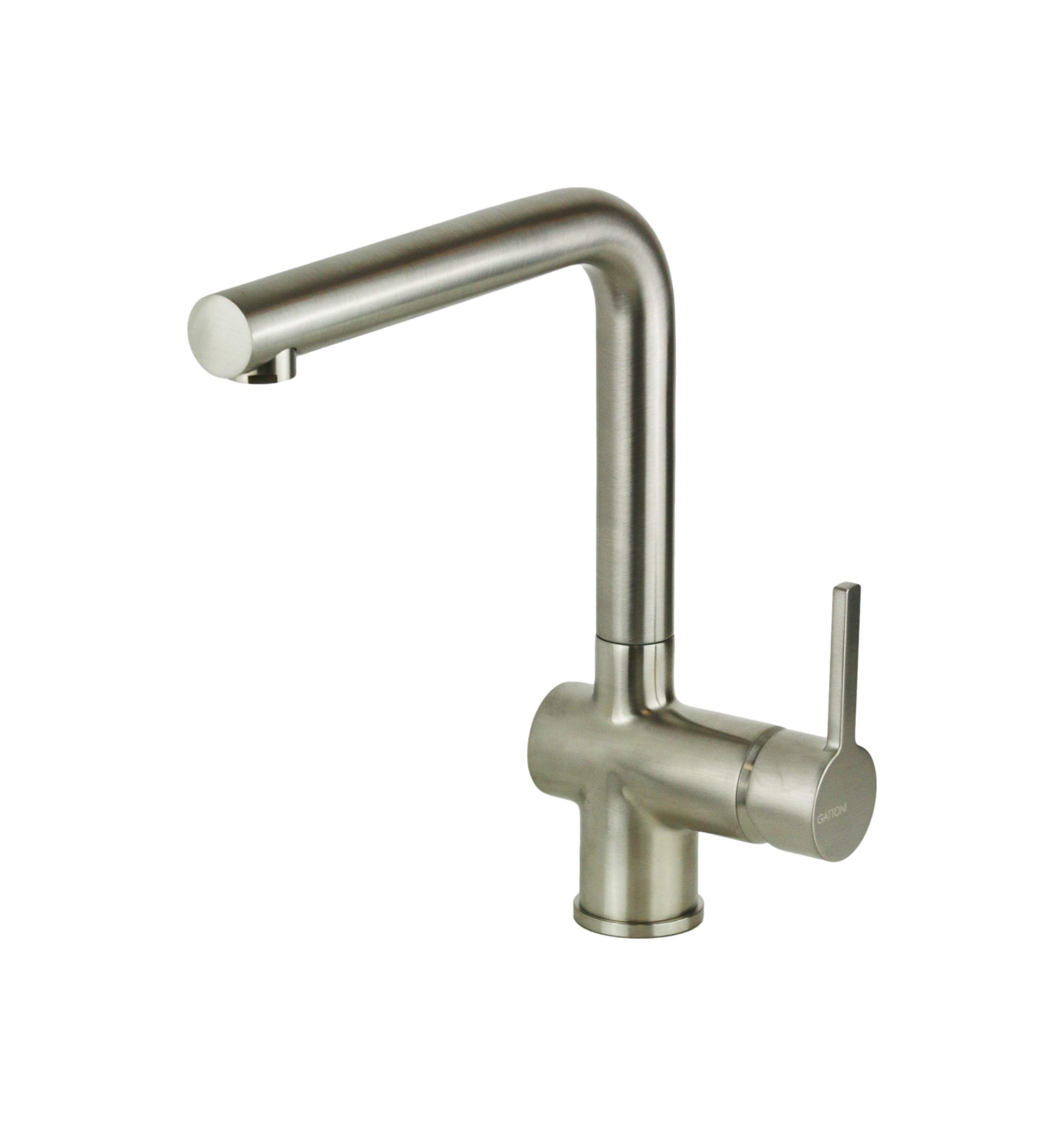 Miscelatore lavello cucina canna fissa girevole 180° in ottone colore acciaio spazzolato |Gattoni Rubinetteria PC0420.NS