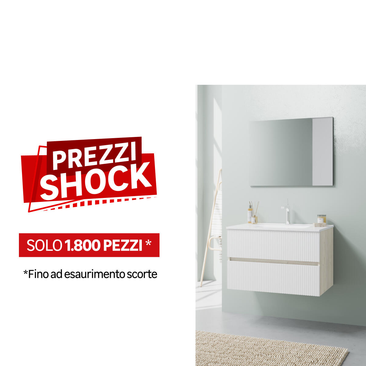 Mobile bagno sospeso con lavabo e specchio L 80.2 x H 50.6 x P 44 cm Bianco Lucido, Rovere Ice 2 cassetti per vasca centrale Santorini