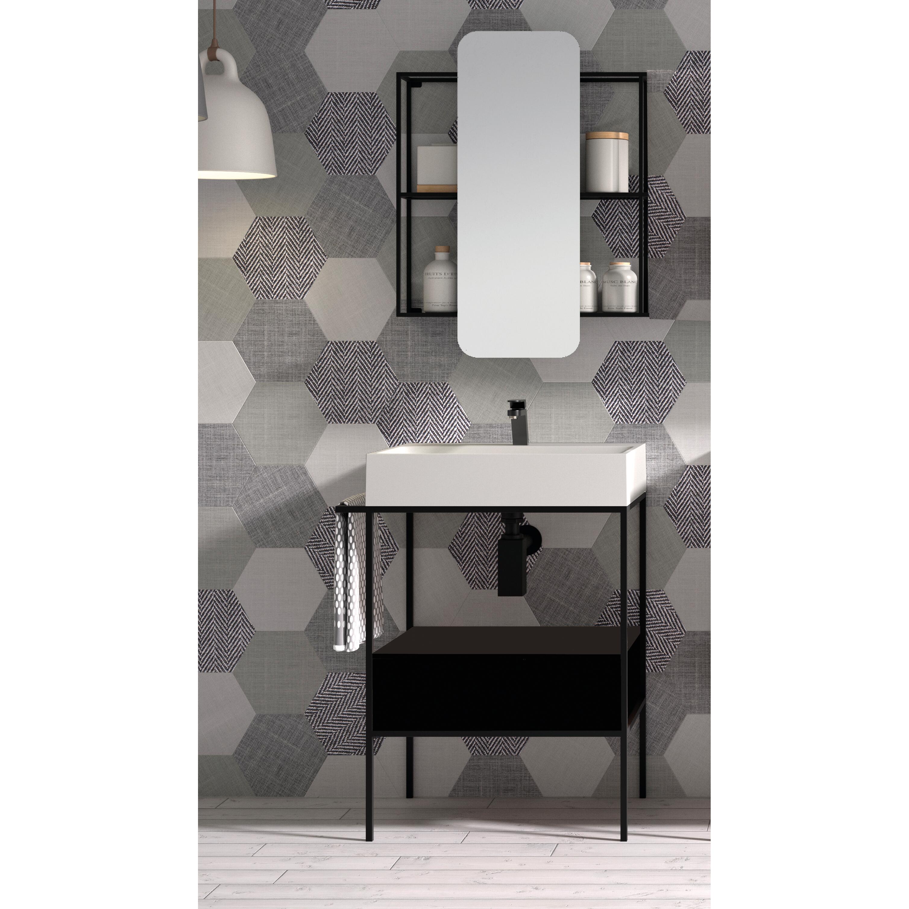 Mobile da bagno in metallo spazzolato e tinto nero. Ha un cassetto DMF nero con sistema di apertura "push", un portasciugamani laterale sinistro e un ripiano sotto il lavello, uno spazio di archiviazione aggiuntivo ideale per i piccoli spazi. Le misure dei mobili sono 67x77x45 cm (larghezza x altezza x profondità). Lavello non incluso.