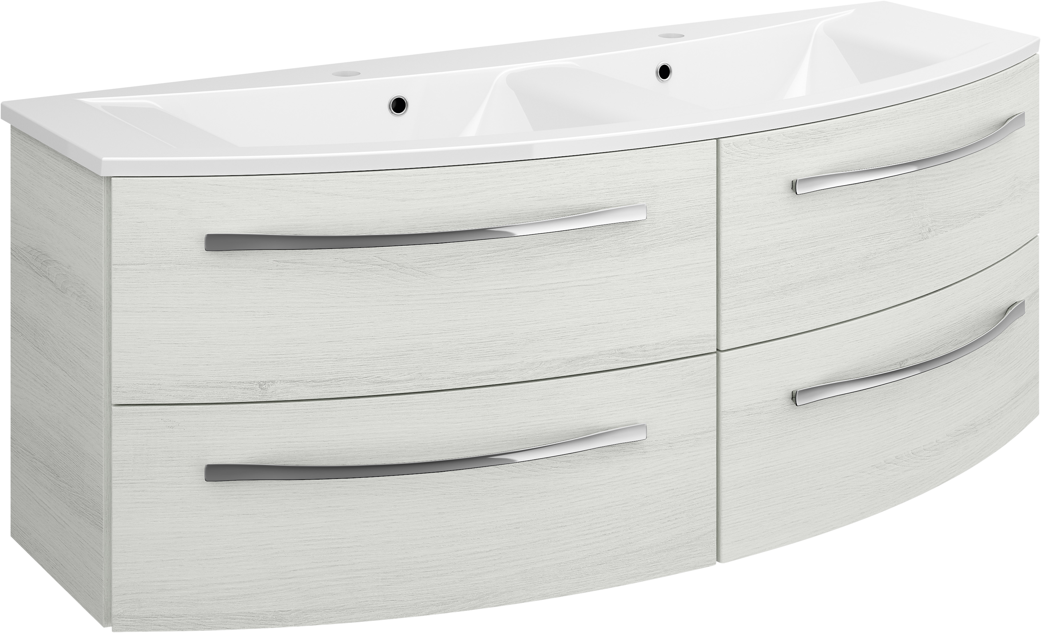 mobile lavabo in rovere bianco 129 cm, 4 cassetti. cassetti assemblaggio semplice, design senza tempo, profili dritti e puliti, chiusura ammortizzata.il mobile è elegante, di alta qualità, stabilità, durata e ha la protezione dell'ambiente.