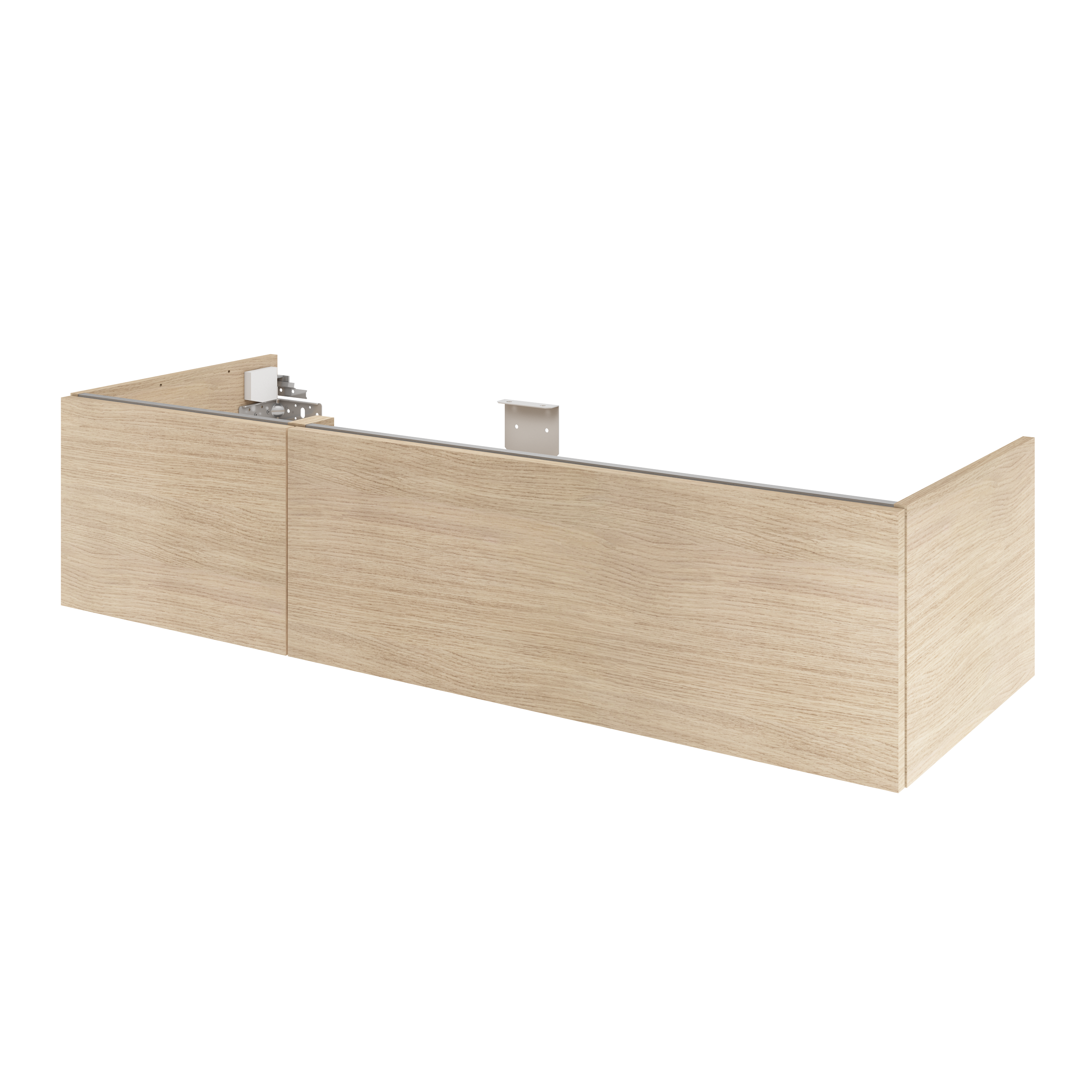 Mobile bagno sotto lavabo senza top, realizzato in MDF, finitura quercia naturale. Larghezza 135 cm. Cassetti con apertura a spinta, sistema push and pull. Legno certificato FSC, proviene da foreste gestite in modo sostenibile e responsabile. Made in Italy, questo prodotto contribusice allo sviluppo delle produzioni e distribuzioni locali a favore della riduzione delle emissioni di CO2 nell’aria per ottenere il minor impatto sull’ambiente. Garanzia 5 anni. Prodotto riparabile, progettato per durare nel tempo.