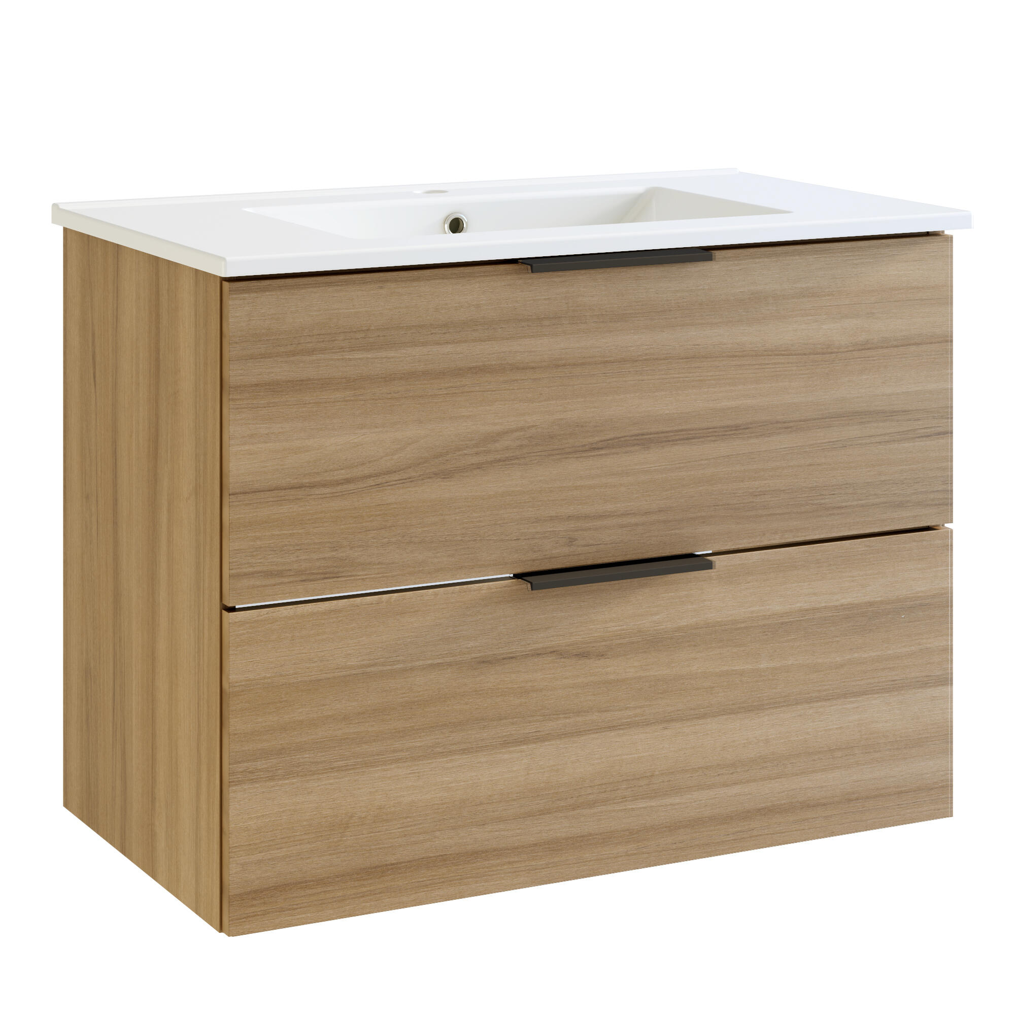 Mobile da bagno sospeso sotto lavabo L 79 x H 60 x P 44.8 cm noce satinato, 2 cassetti NOUA