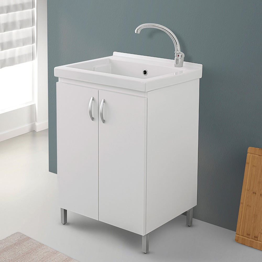 Mobile lavatoio 2 ante 60x50 cm bianco con vasca in ceramica