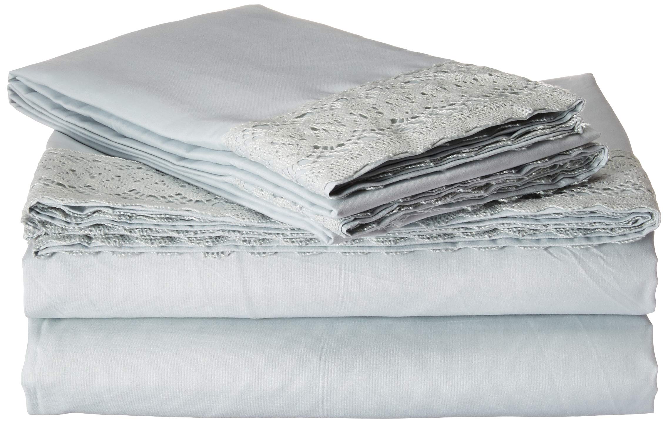 Modern Threads Includes Flat, Fitted Sheet with Deep Pockets, & Pillowcases Set di 4 Pezzi di Lenzuola in Microfibra con Pizzo all'Uncinetto, Nebbia M