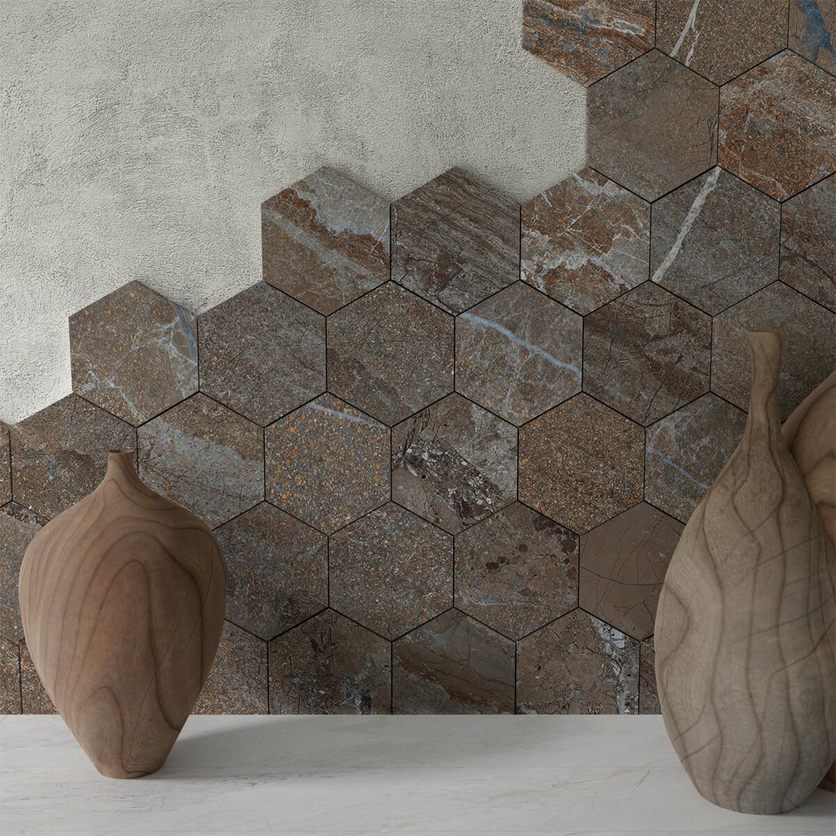 In gres porcellanato smaltato, esagonale, effetto pietra, confezione da 7 pezzi
