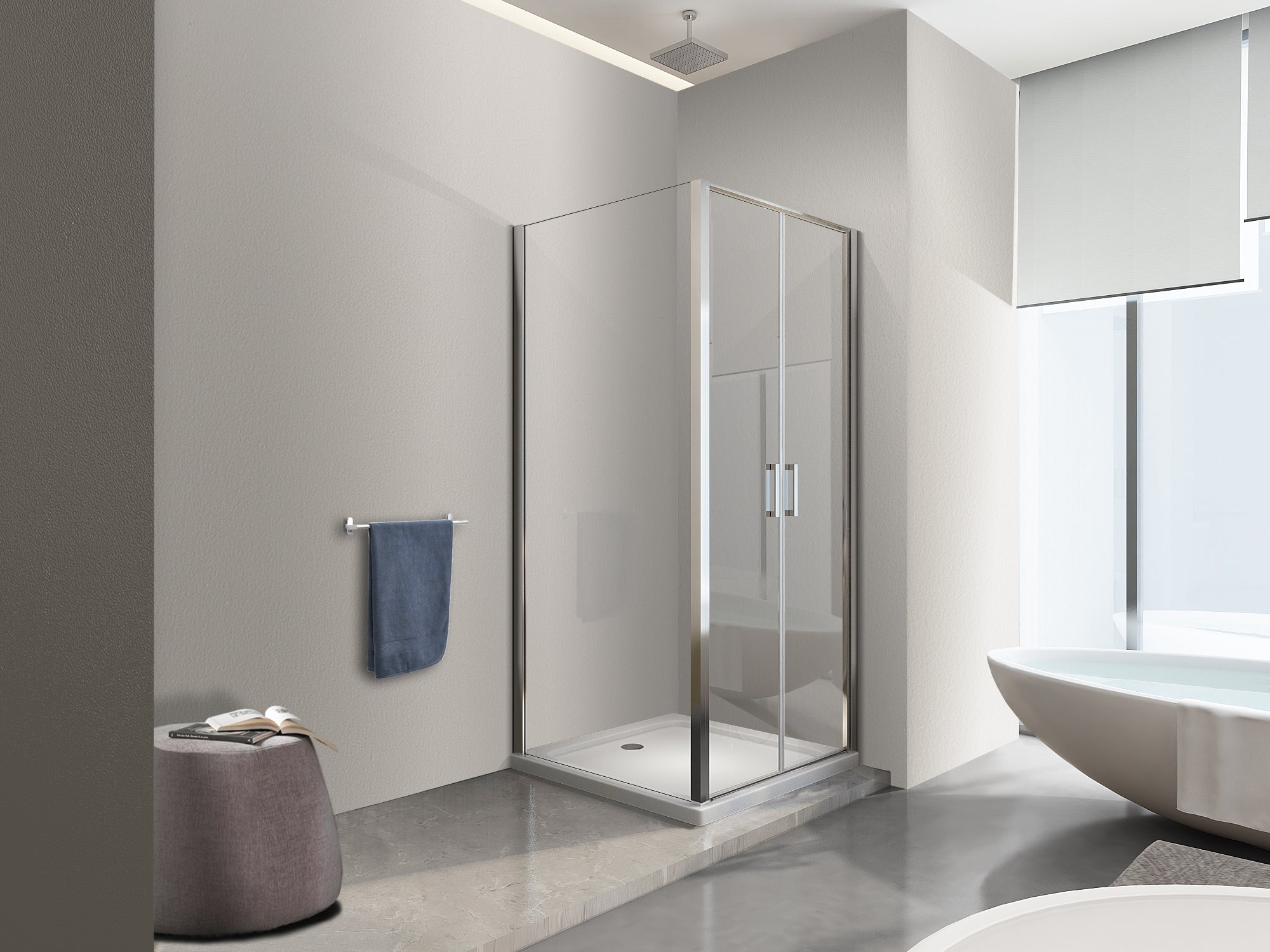 Realizzato con vetro temperato da 6 mm e dotato di trattamento easyclean, assicura una pulizia agevole e duratura nel tempo. L'apertura tipo saloon, con due antine che si aprono sia verso l'interno che verso l'esterno, è la soluzione ideale per ottimizzare lo spazio e garantire un accesso comodo e ampio.