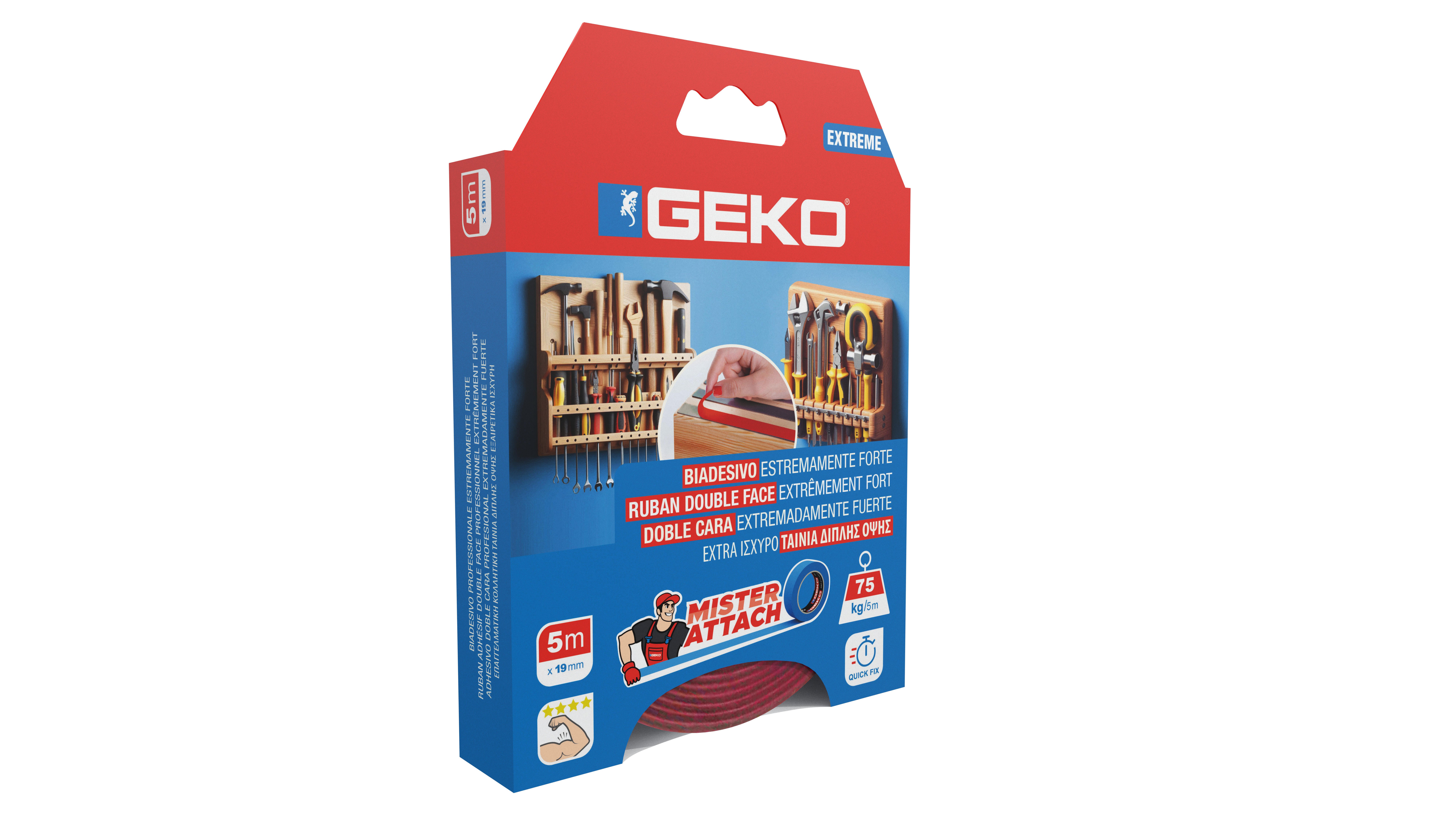 Nastro adesivo, GEKO Extreme, biadesivo per fissaggio rosso H 19 mm x L 5 mt