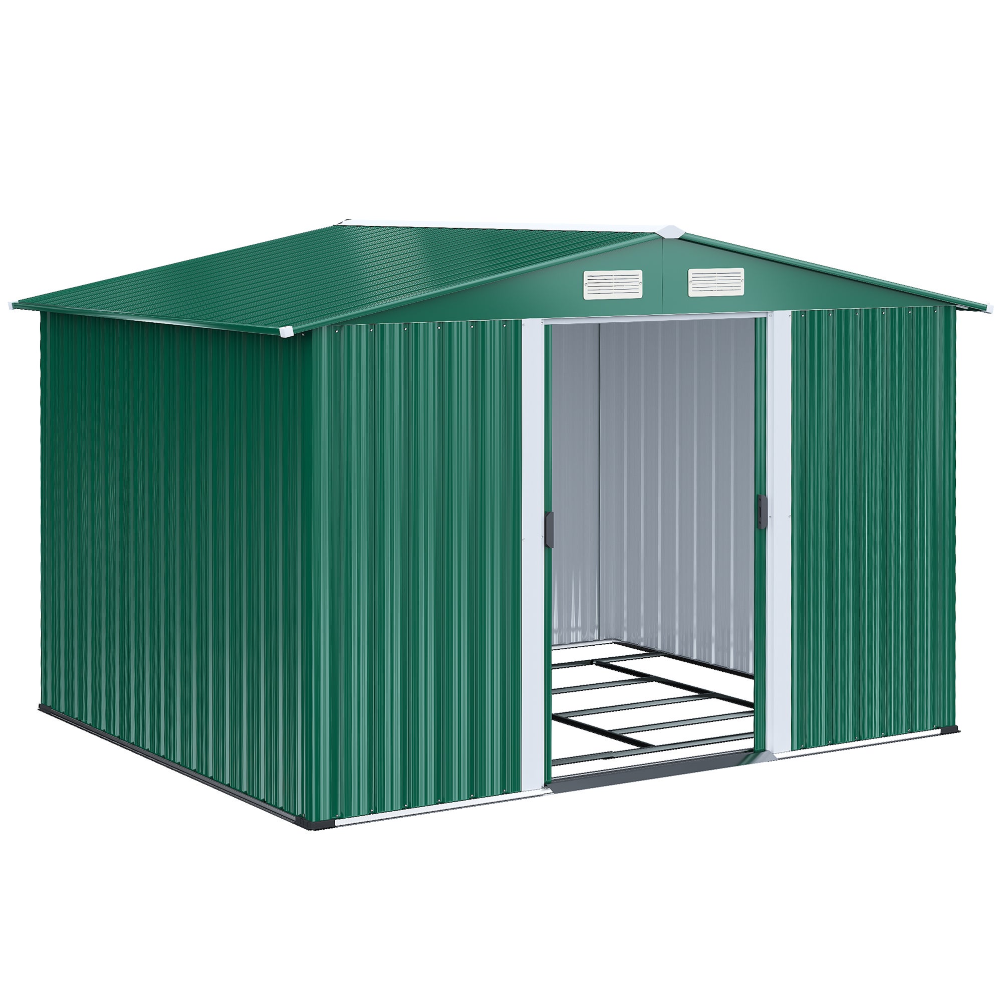 Outsunny Casetta Giardino Acciaio, Base, Porte Scorrevoli, 258x206x178cm, Verde