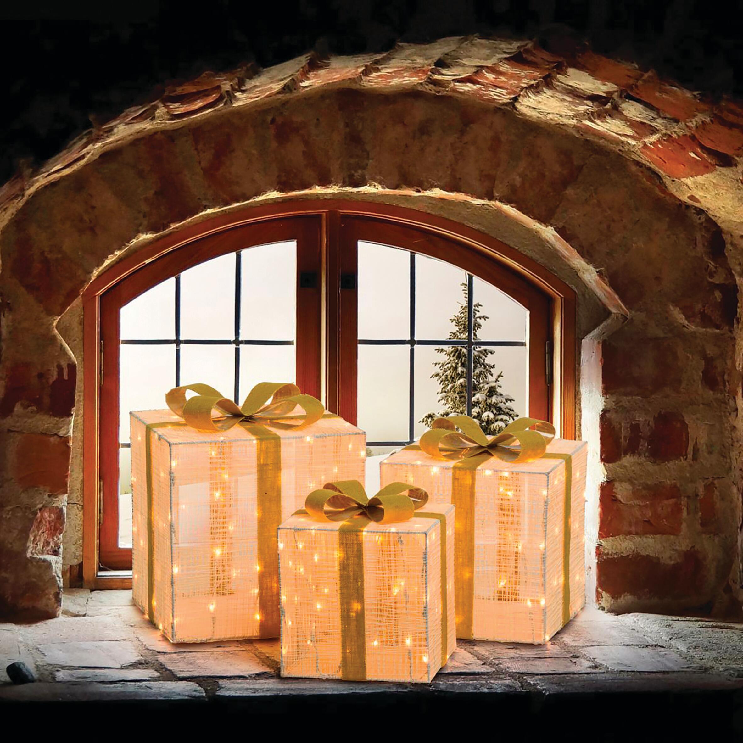 Pacco Regalo luminoso 3 pezzi 240 lampadine led bianco caldo L 1.3 m x H 40 cm