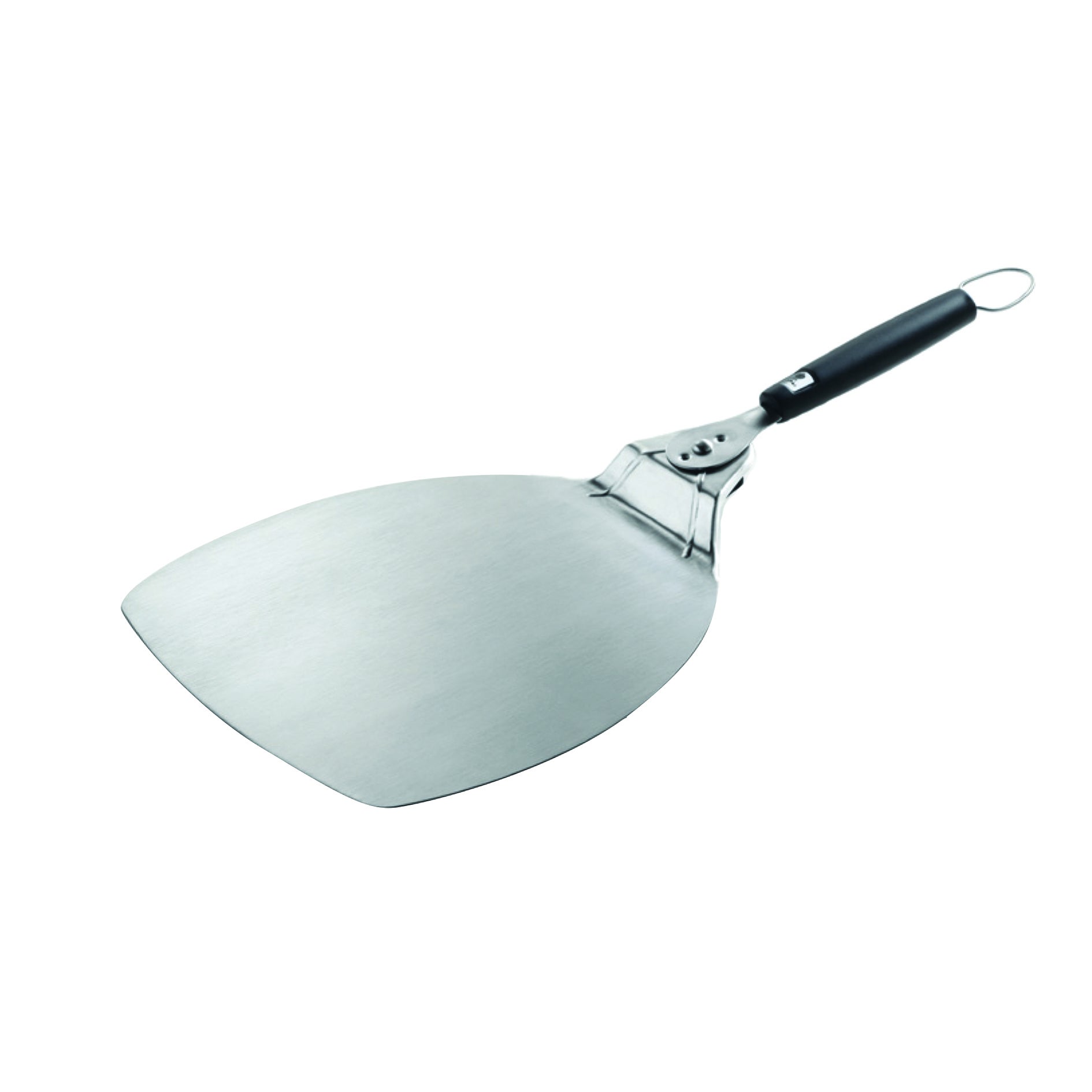 Pala per pizza in acciao inossidabile. Pratica: può essere lavata in lavastoviglie, ed il manico girevole può essere richiuso per occupare meno spazio.