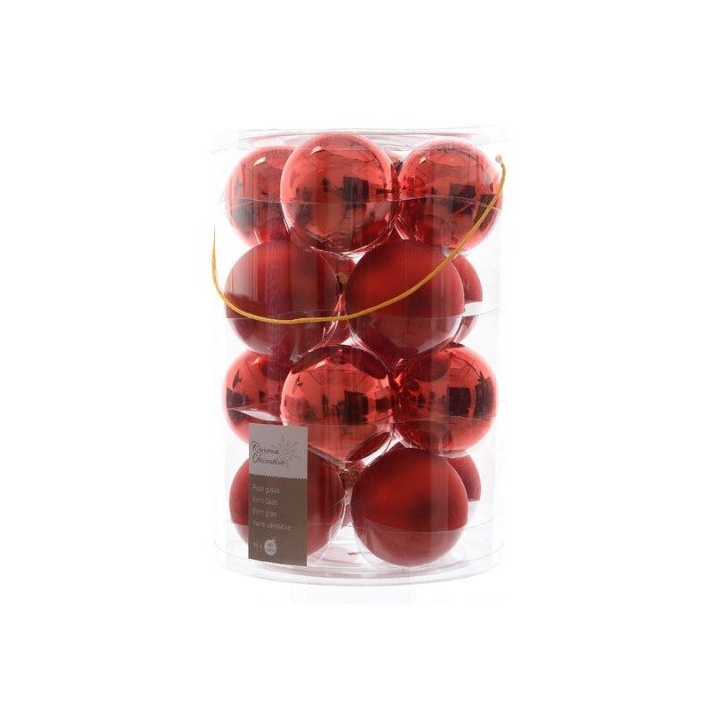 Palline di Natale da Appendere in Vetro 8 cm Rosso Natale. Set di 16