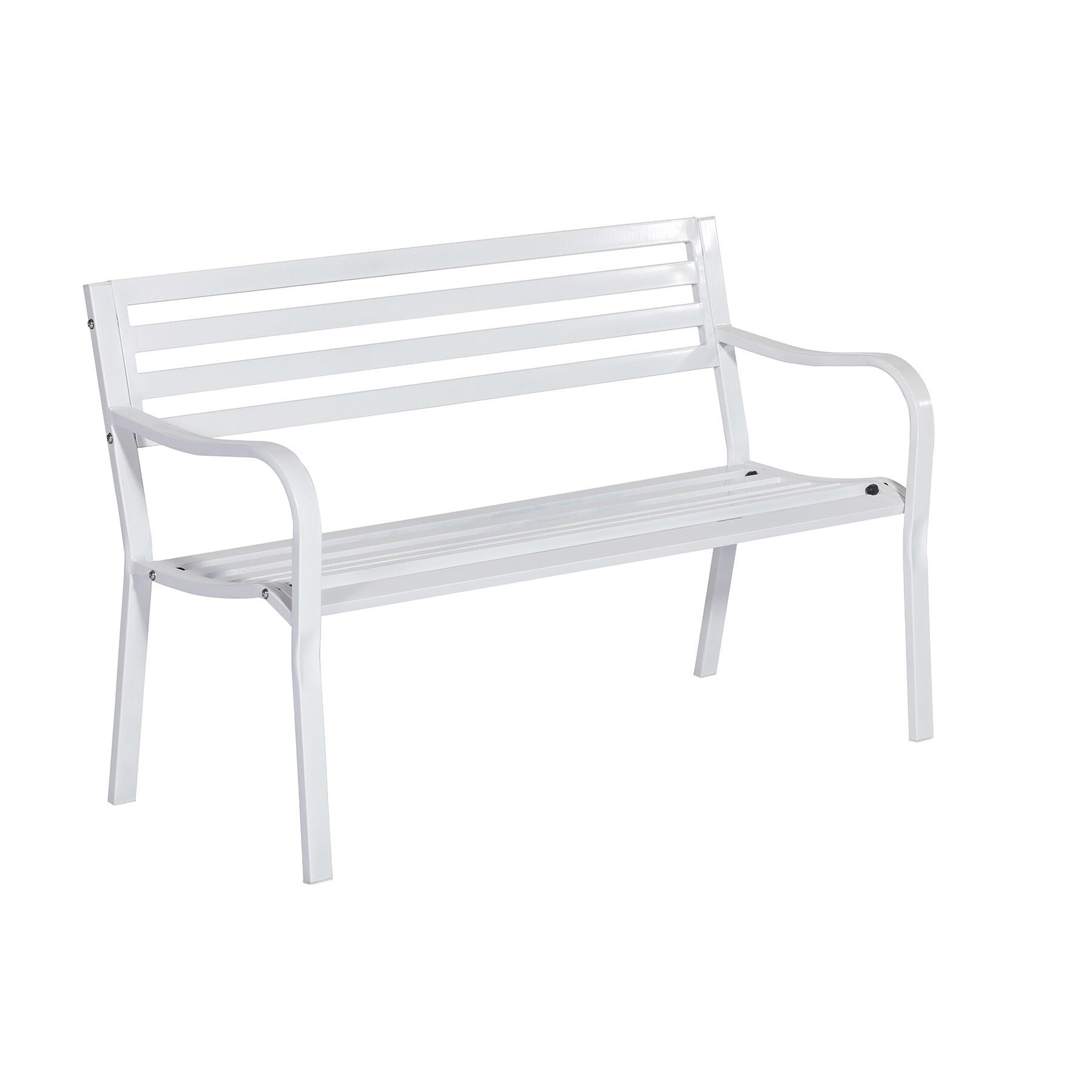 Panca da giardino in acciaio bianco con braccioli Park, 2 posti