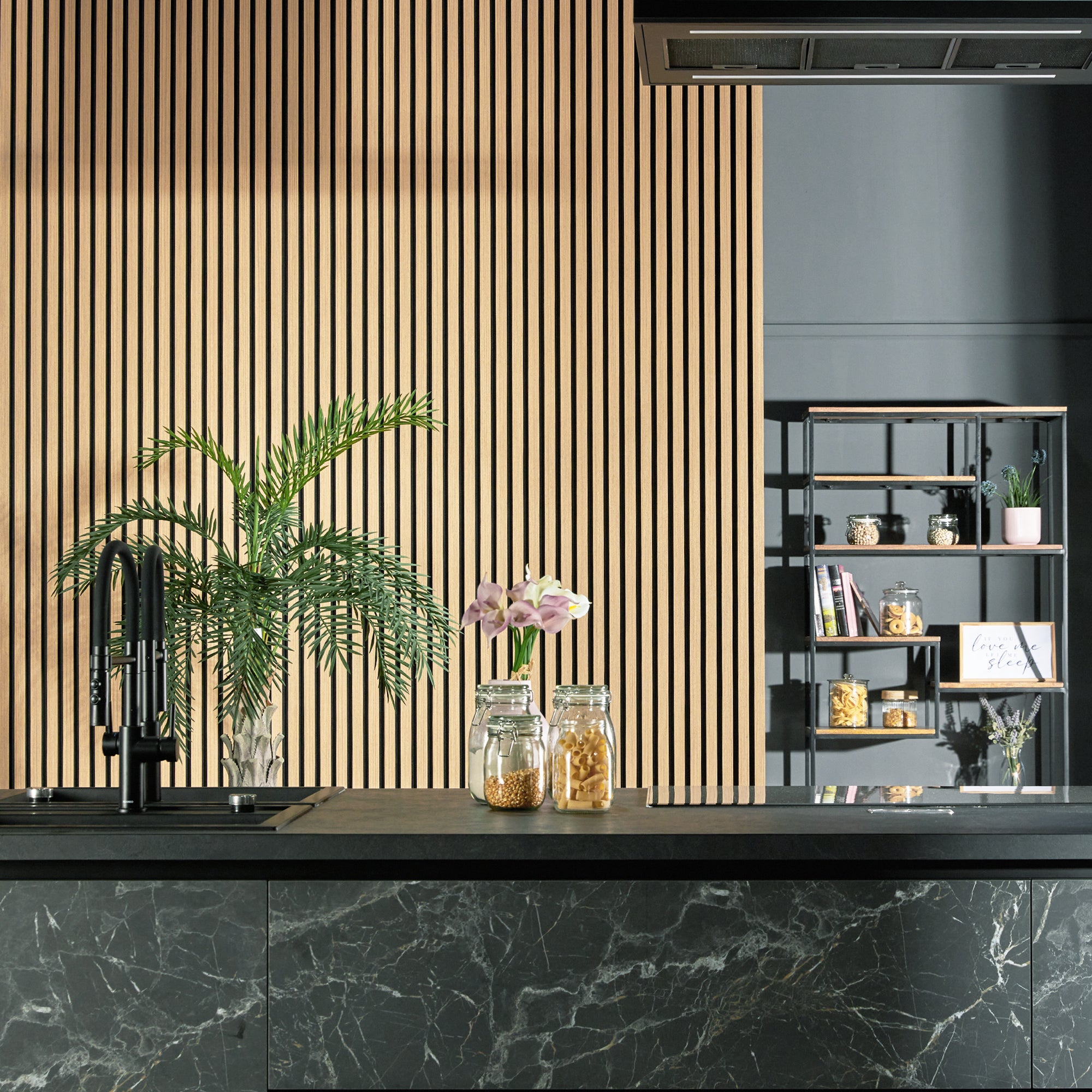Pannello decorativo dogato fonoassorbente legno acustico Esseci TEAK 275x60 cm