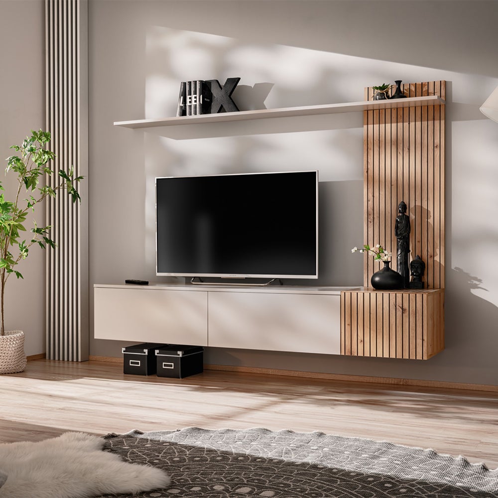 Parete attrezzata sospesa moderna cashmere e rovere 180x130 PAP152
