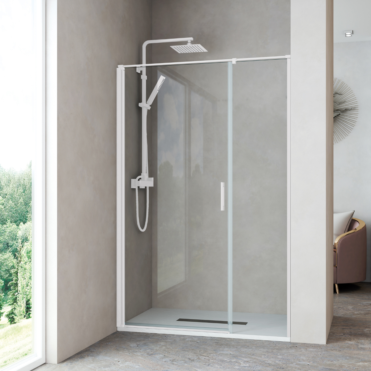 Disponibile in varie misure, tutte con un certo margine di adattamento, misura che deve coincidere con la distanza tra le pareti a diverse altezze. La porta a battente della paratia doccia ha un’apertura di 90º verso l’interno e 90º verso l’esterno. Altezza: 195 cm. Composta da vetro temperato di alta sicurezza da 6 mm con trattamento anticalcare. Paratia reversibile, disponibile trasparente o serigrafata, con chiusura magnetica. Maniglia a doppia presa.