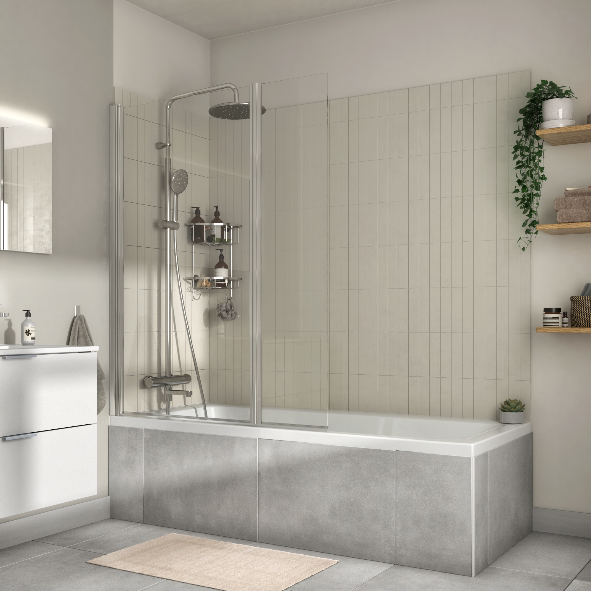 Parete vasca con 2 pannelli Essential H 140 cm, Vetro di sicurezza 5 mm trasparente